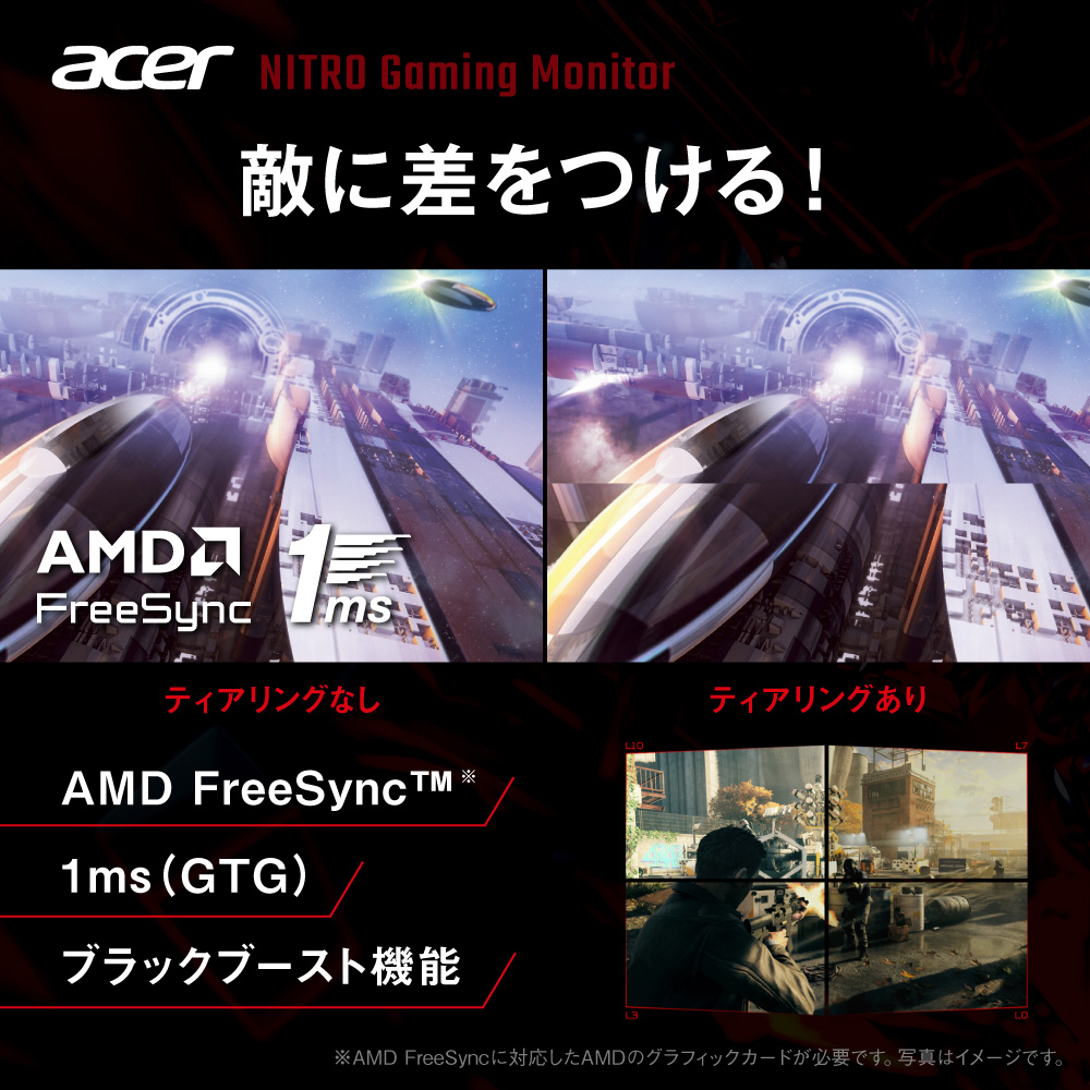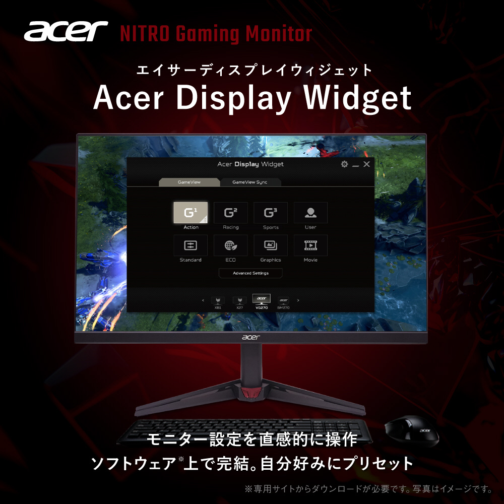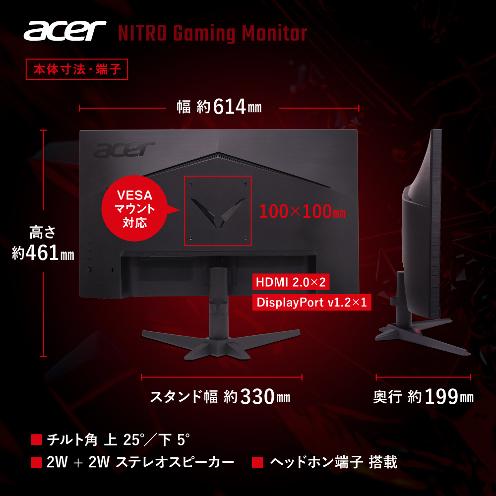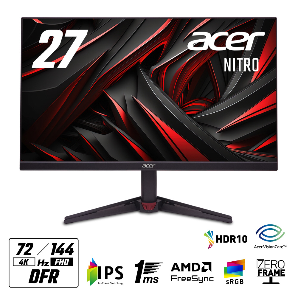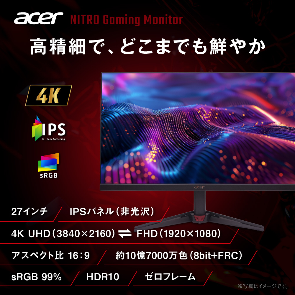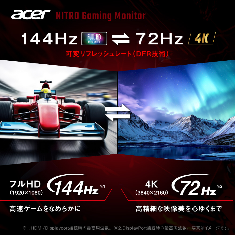 Acer 27インチ 可変リフレッシュレート 1ms 144Hz(FHD) 72Hz(4K) ゼロフレーム Nitro ゲーミングモニター