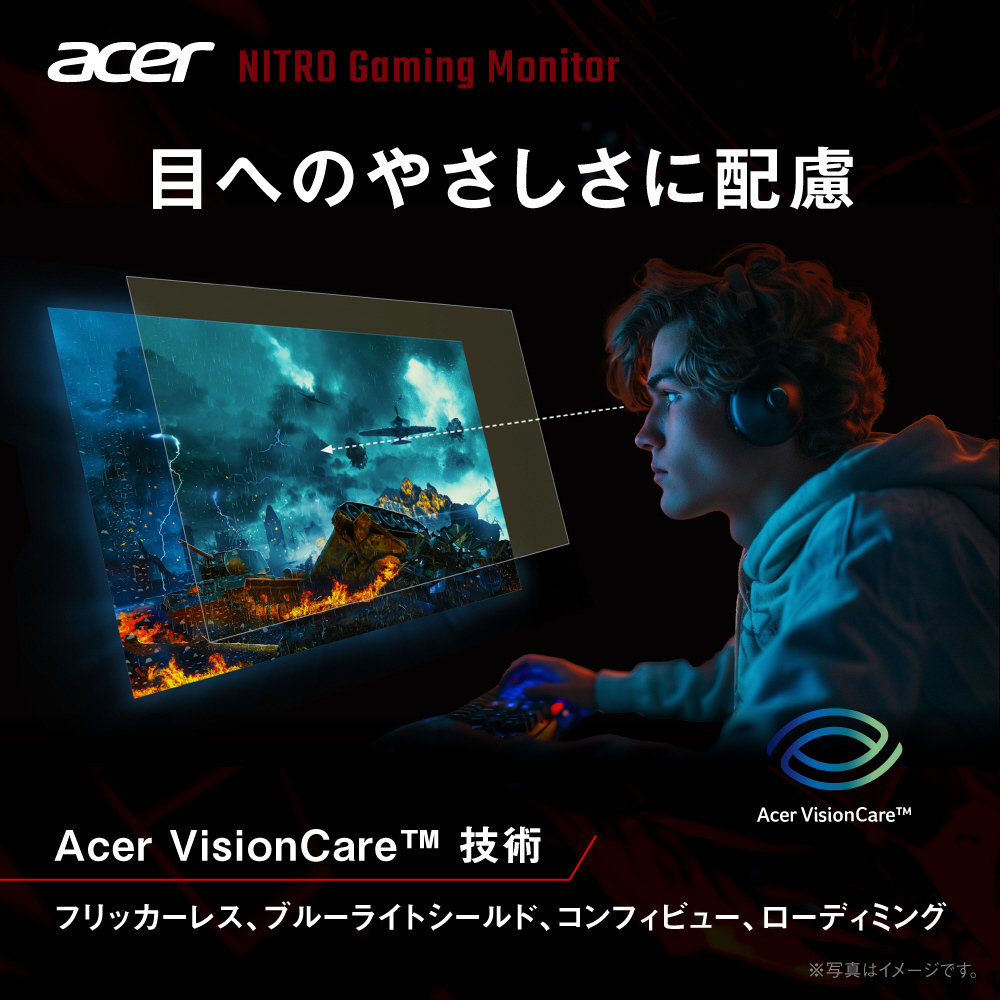 プロユーザーからライトユーザーまでどんな方でも長く快適に使っていただけるよう、Acer VisionCare技術を採用。画面のちらつきを抑えるフリッカーレス、暗い環境で明るさを調整するローディミング技術、眼精疲労の要因となるブルーライトを軽減するブルーライトシールド、パネル表面のざらつきや映り込み、外光反射を抑えるコンフィビューディスプレイなど、目へのやさしさに配慮した仕様です。