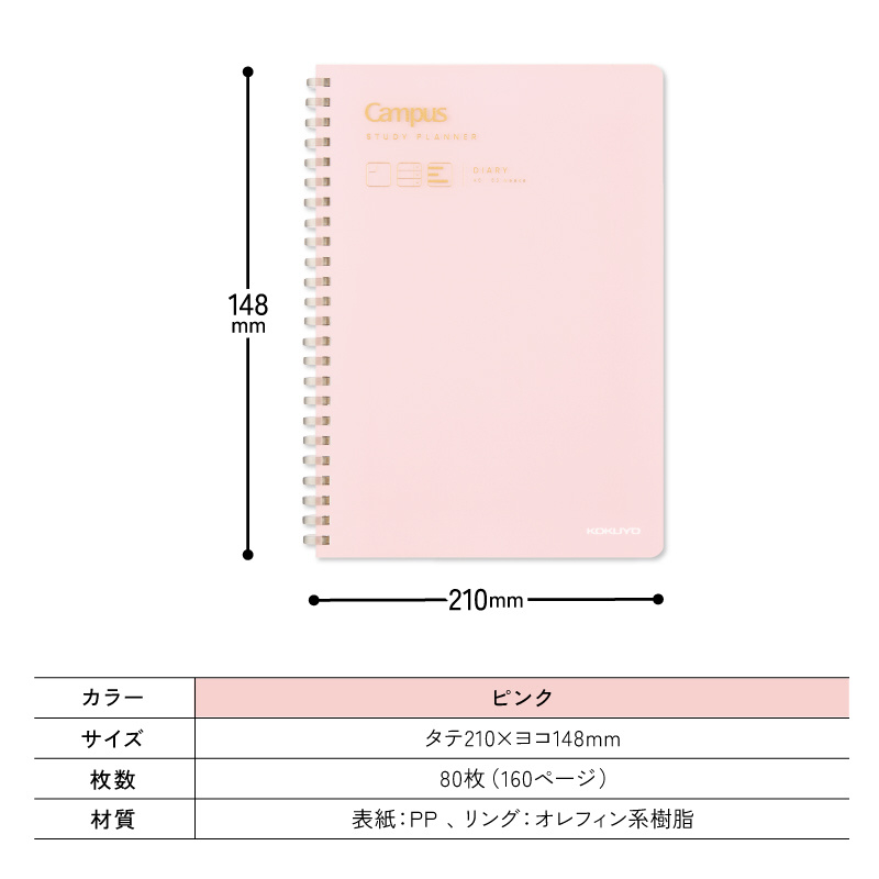 | 商品名 | スタディプランナー(ダイアリー) Campus(キャンパス) ピンク SY138-P [A5] |