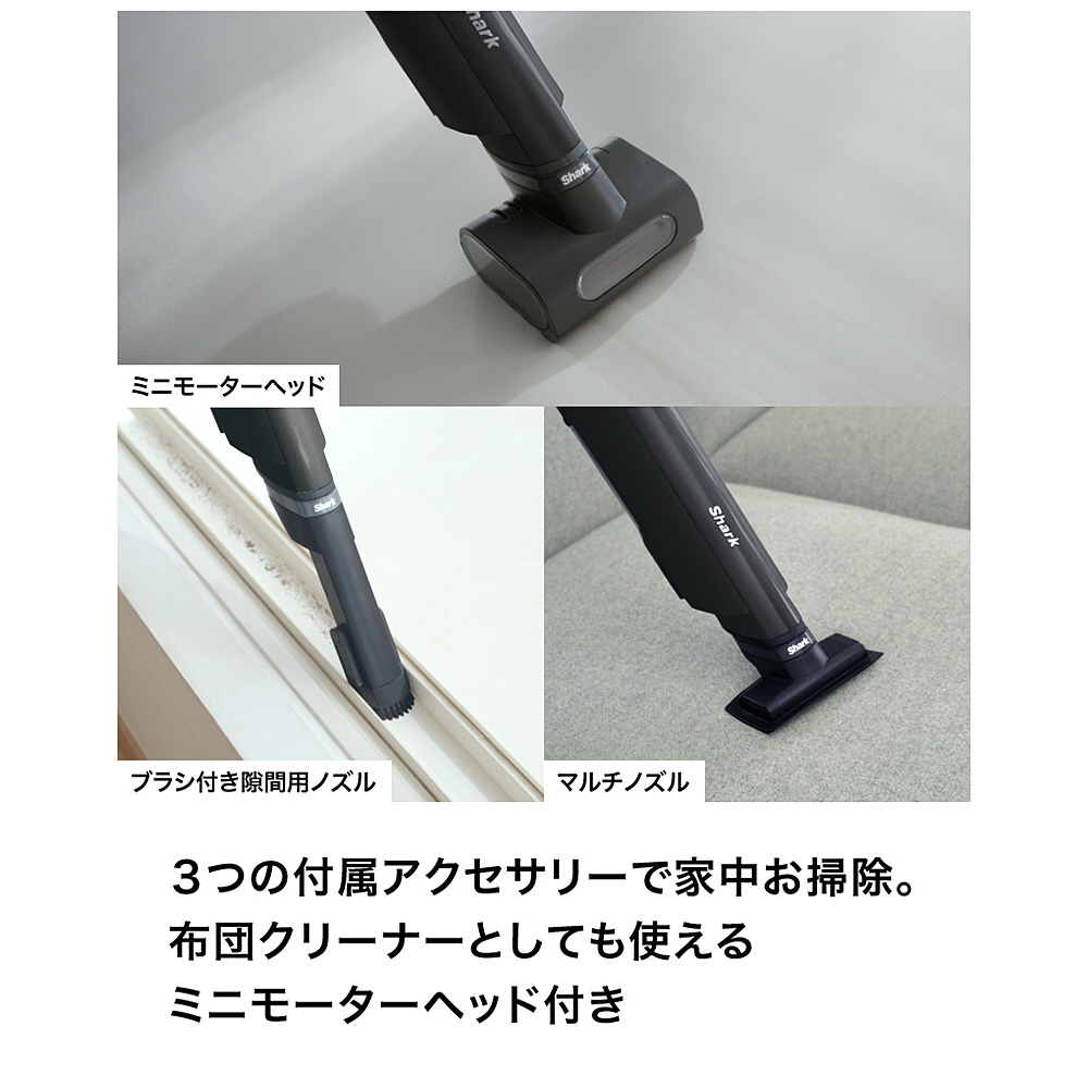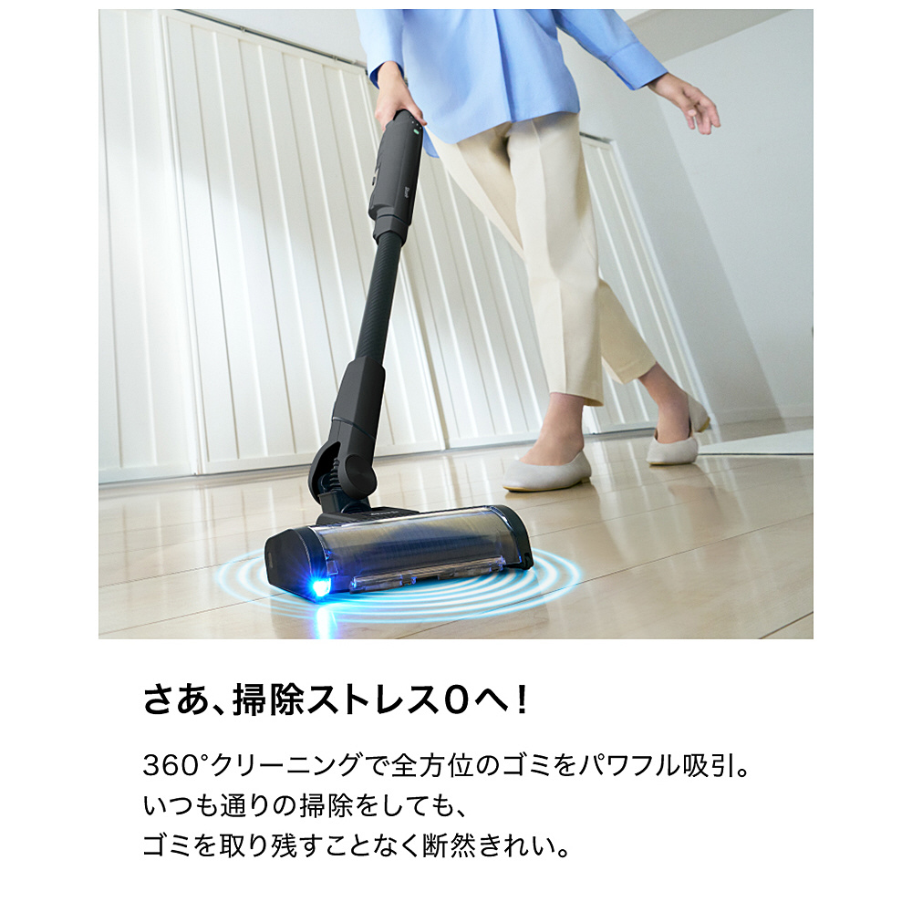 ■掃除機を前に押しても、手前に引いても、ヘッドの両サイドからもゴミを吸い取るシャーク独自の360°クリーニングで掃除ストレスゼロへ