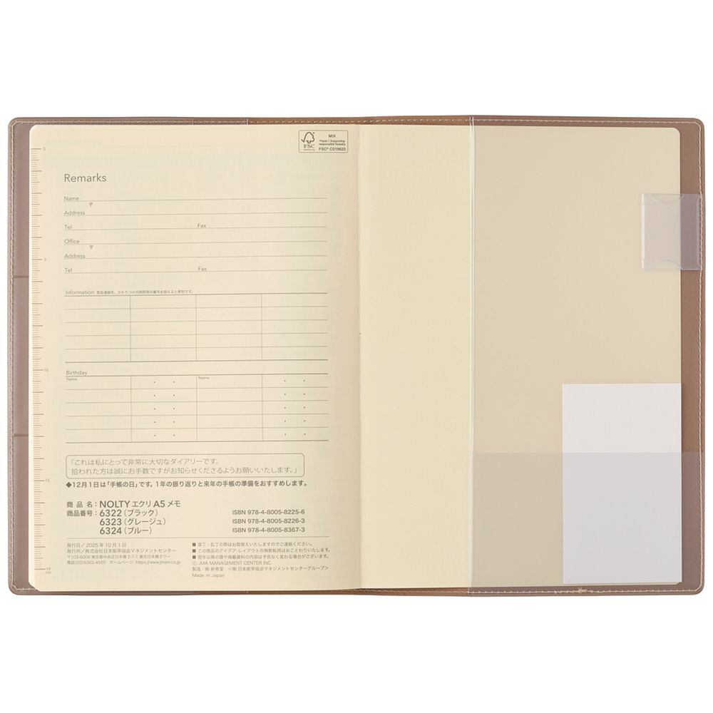 2026年版1月始まり NOLTY(ノルティ) エクリメモ 手帳 グレージュ 6323 [ウィークリー /A5 /月曜日始まり]