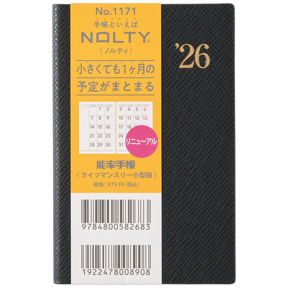 2026年版1月始まり NOLTY(ノルティ) 能率手帳 ライツマンスリー小型版 黒 1171 [マンスリー /月曜日始まり]
