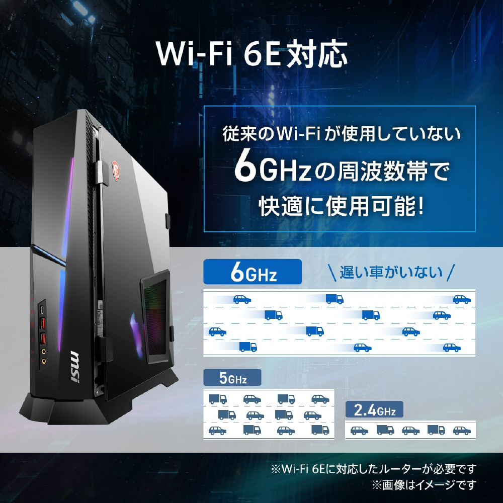 高性能・冷却性・スリム筐体の3要素を兼ね備えたゲーミングPCで、WQHD解像度へのステップアップや、クリエイティブワーク・AIにも対応します。RGBライティングやWi-Fi 6Eなど便利機能も充実しています。