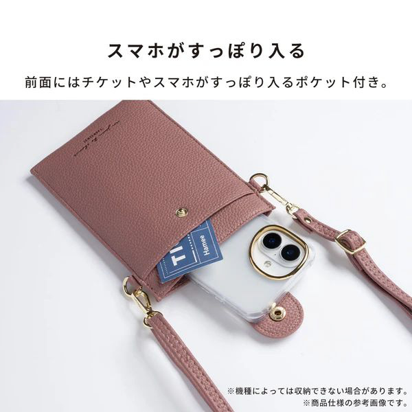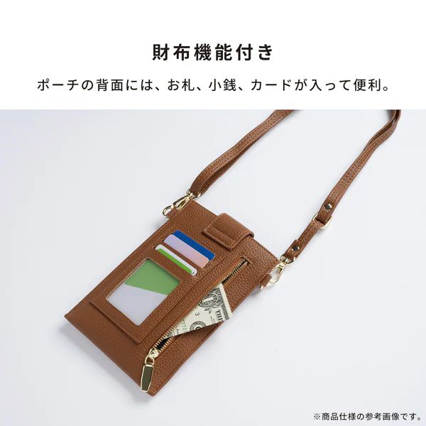 ファスナーポケット付き ウスマチスマホショルダーポーチ キャメル 682-445749