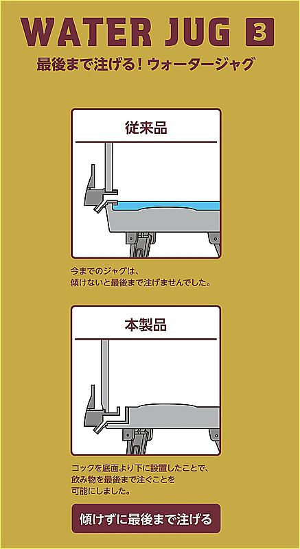 最後まで注げる、使いやすい便利なウォータージャグ。