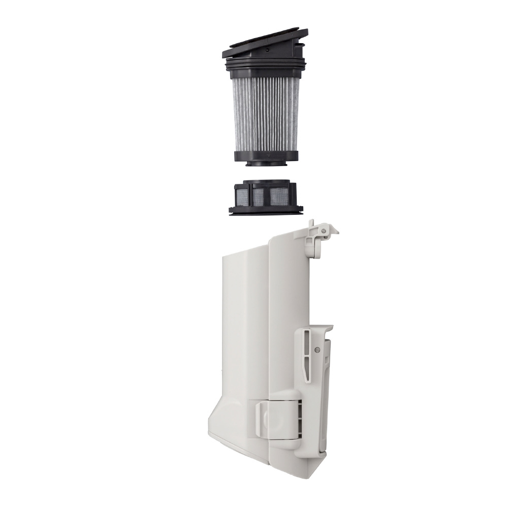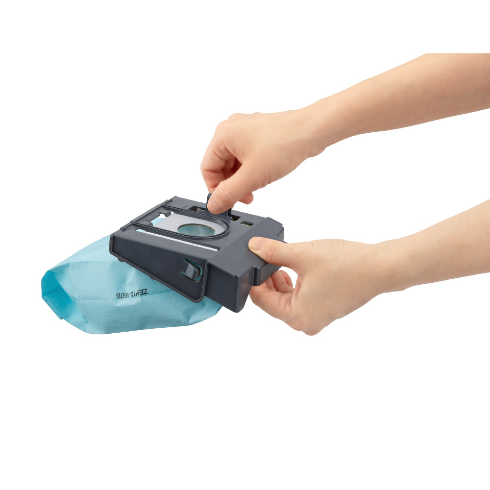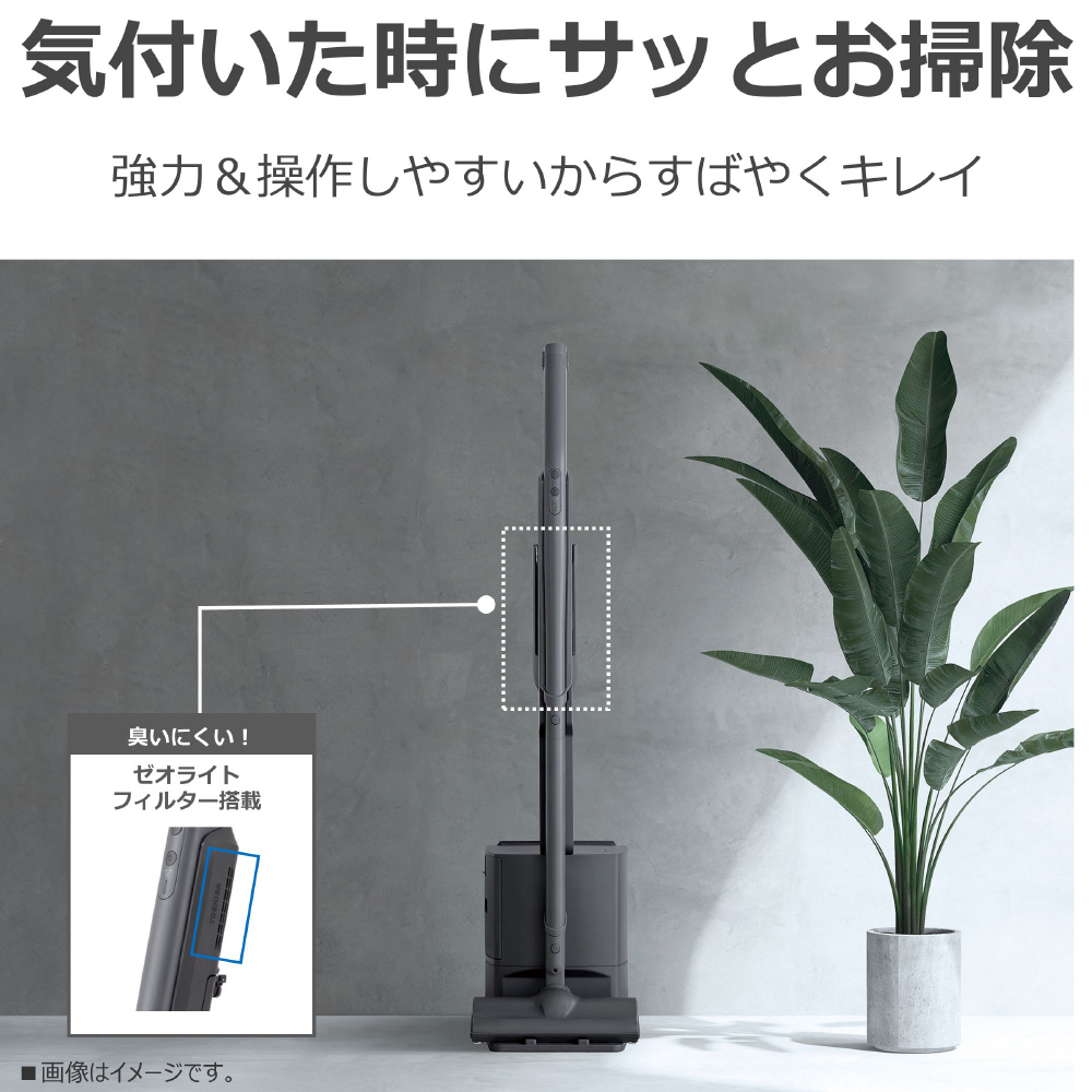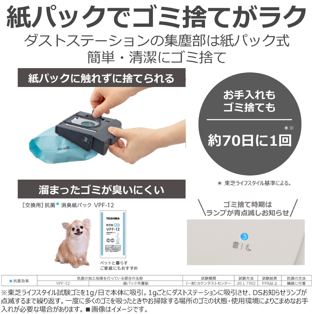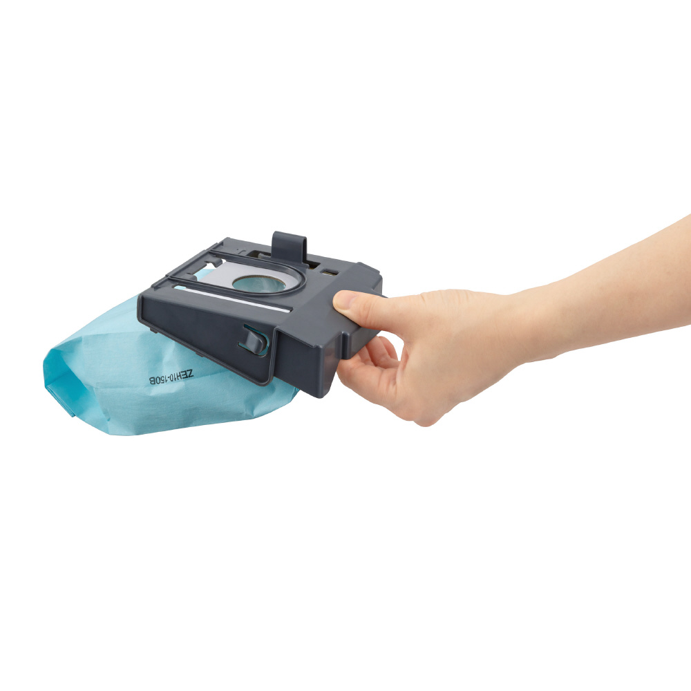・本体フィルターをオートエアー洗浄ダストステーションニ戻すたびに、本体フィルターに付着した細かいゴミをエアーで剥がして毎回リフレッシュ。ダストステーションに本体を戻すとダストステーションの吸引が開始し、本体にたまったゴミを吸い取ります。ダストステーションのゴミ捨ては約70日に1回。