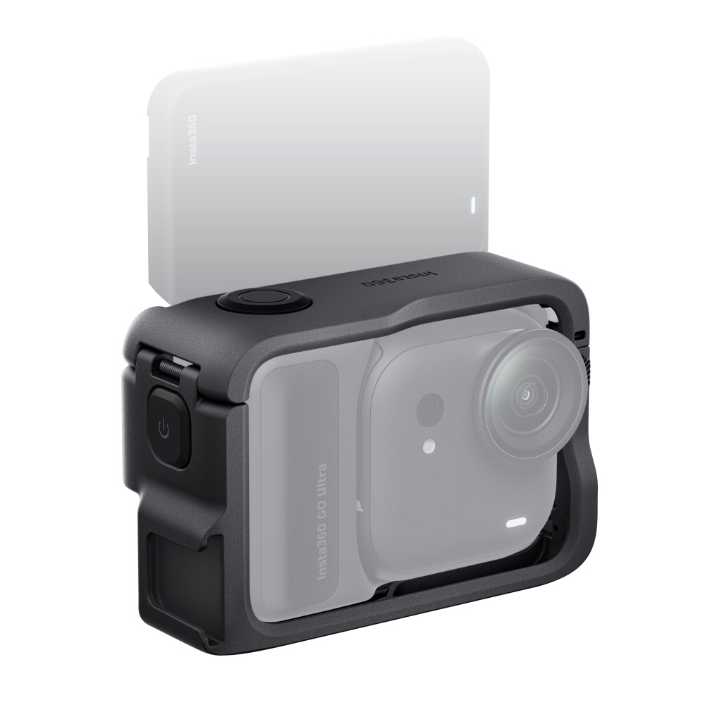 万能フレームを取り外すことなく、リリーススイッチでGO Ultraカメラをアクションポッドから簡単に取り出せます。