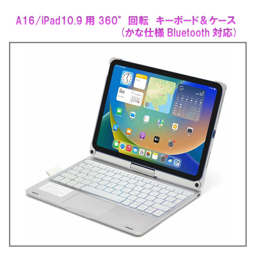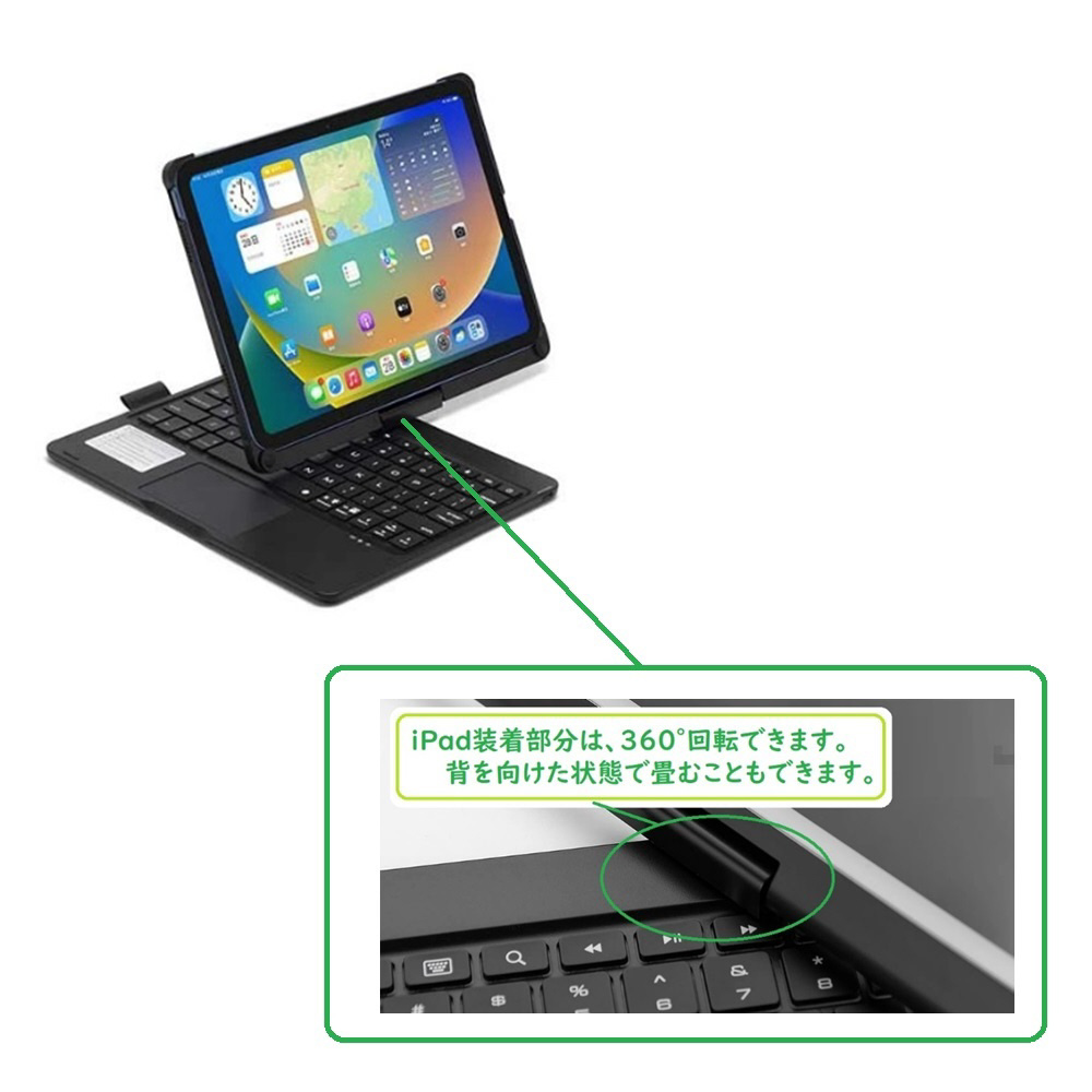 iPad10.9、A16用360°回転タッチパッド付かなキーボード(ケース一体型)