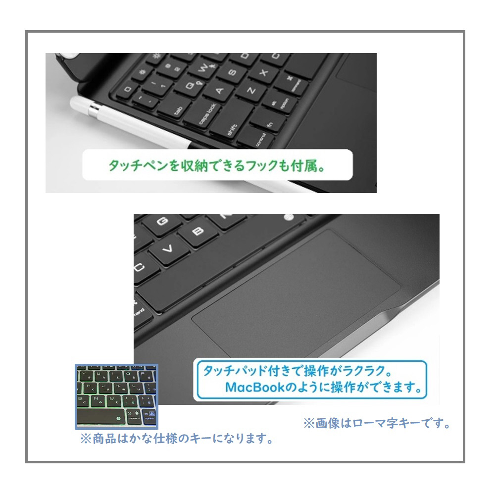 ※タッチパッド仕様のため、iPad本体設定>アクセシビリティ>AssistiveTouch>マウスキー「ON」になっていることを必ずご確認ください。
