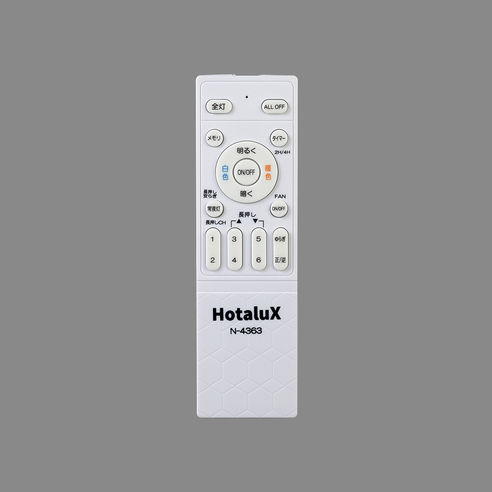●制御機能:リモコン:多段調光(5段階)、LED常夜灯(3段階調光)、滅/調色段階 5通り/風量調整:6段階、ゆらぎの風/ファンスイッチ(正逆回転切替スイッチ)
