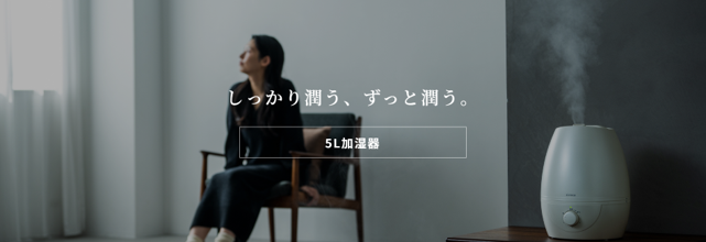 すみずみまでお部屋をうるおすパワフル加湿。抗菌仕様で衛生面にも配慮。たっぷり5Lの大容量だから24時間ずっと快適つづく。