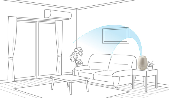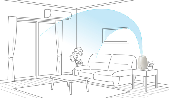 水分の粒子がより長く空気中にとどまり、お部屋のすみずみまで加湿することができます。