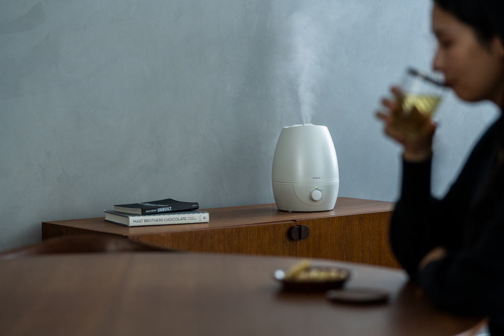 シロカの5L加湿器は水に超音波を当てて振動させることでミストを発生させる「超音波式」。熱くならない常温のミストで加湿するため、火傷の心配がありません。