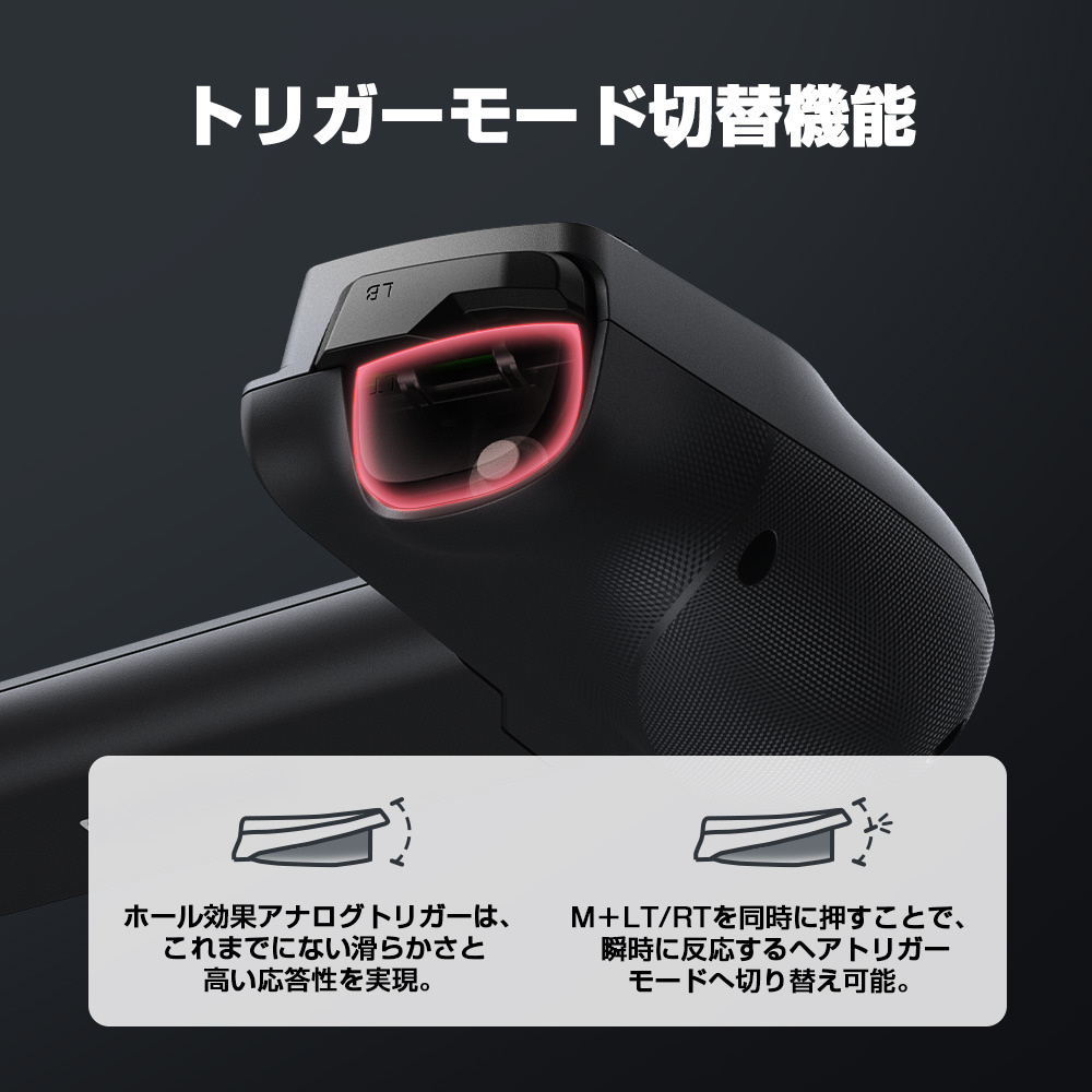 ホール効果センサー仕様のジョイスティックとアナログトリガーを採用しており、高い耐久性と精密な操作性を両立しております。