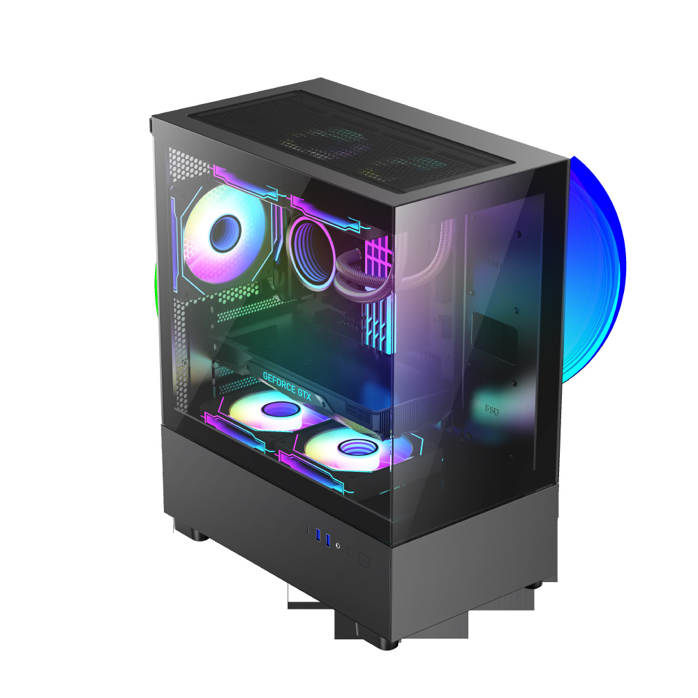 フロント/サイド強化ガラス仕様マイクロATX・ミニITXゲーミングPCケース