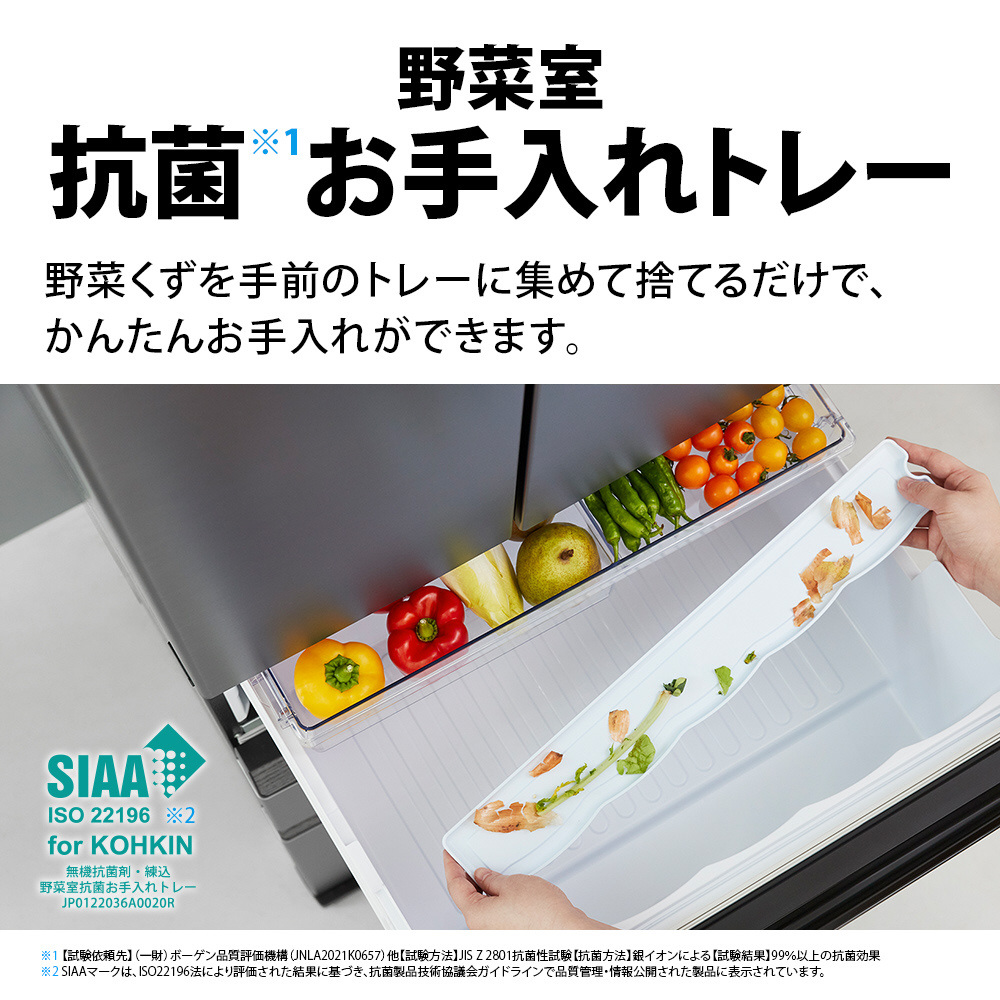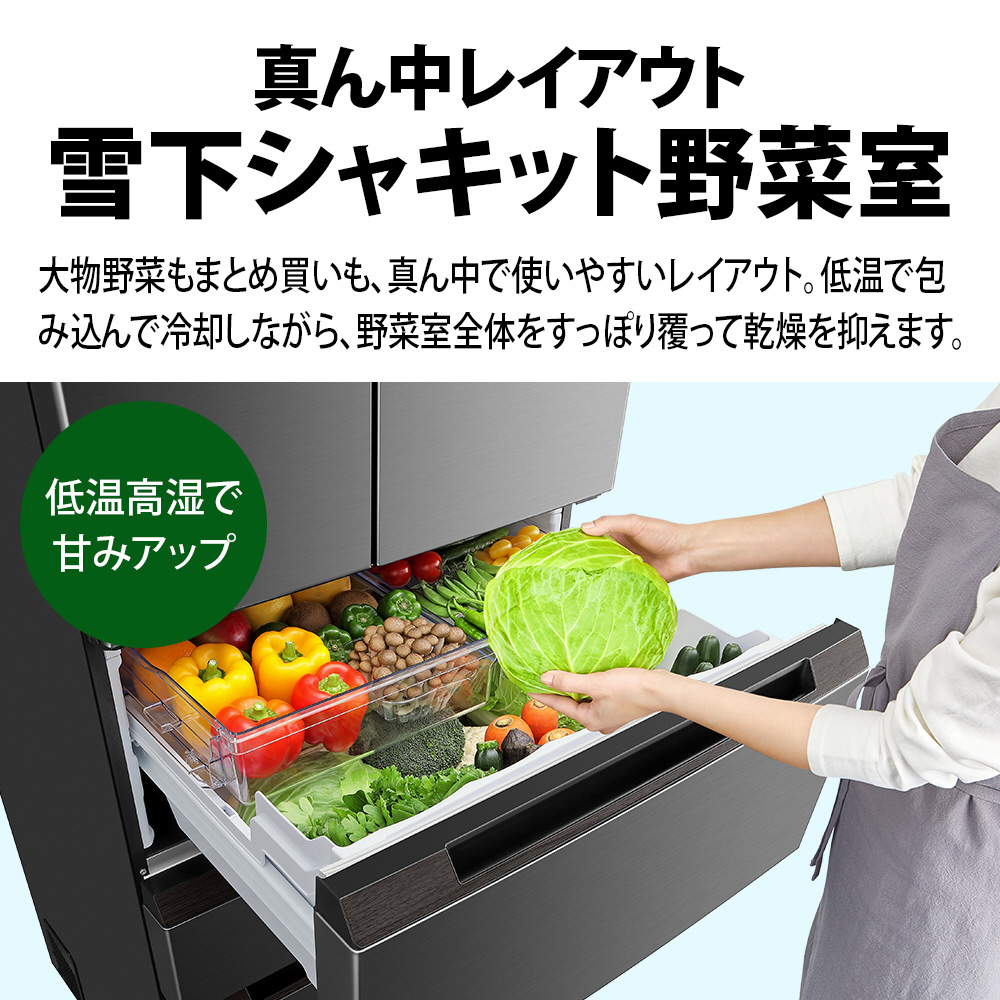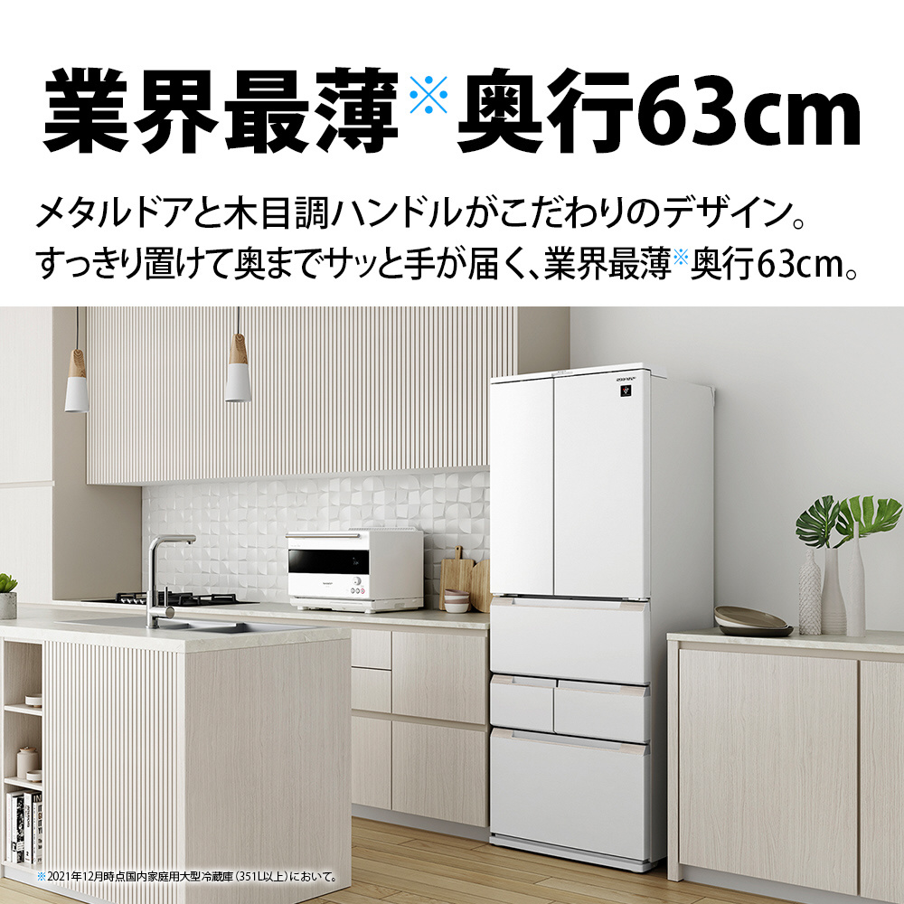業界最薄奥行63cmの薄型でキッチンライフをサポート。たっぷり入るからまとめ買いも安心。