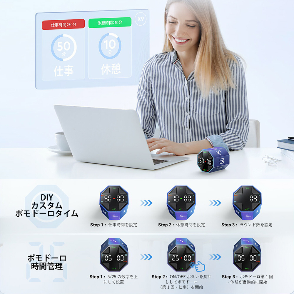Ticktime Maxは、生産性を最大限に引き出しながら、休憩を忘れずに楽しい一日を叶えるタイマーです。