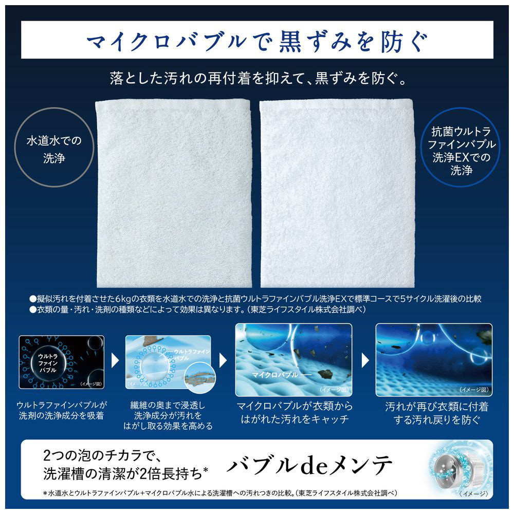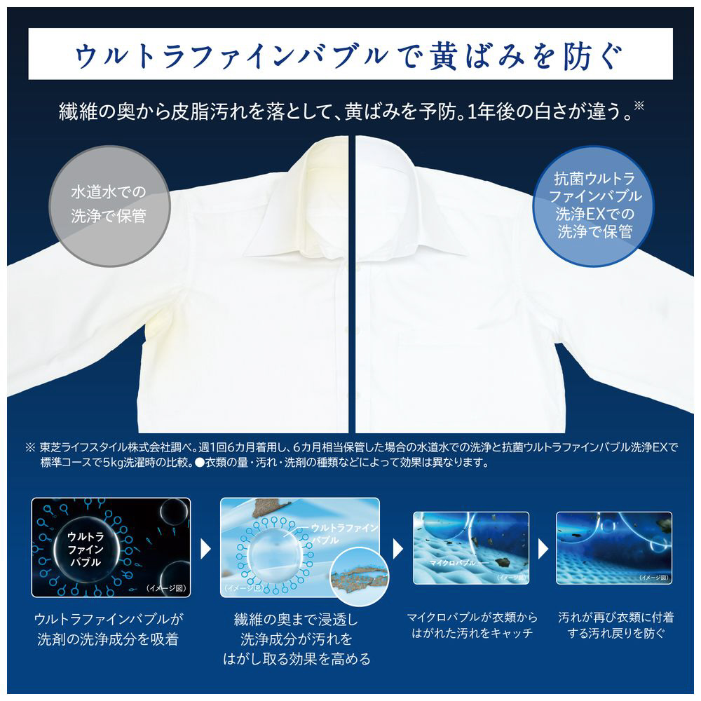 「ウルトラファインバブル」と「マイクロバブル」、2つの泡のチカラで、黄ばみと黒ずみを防ぎます。