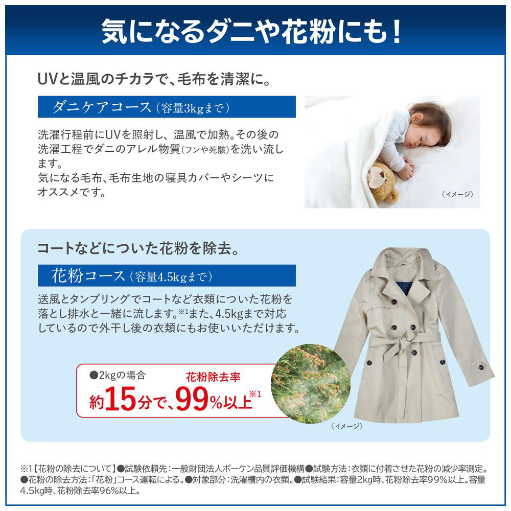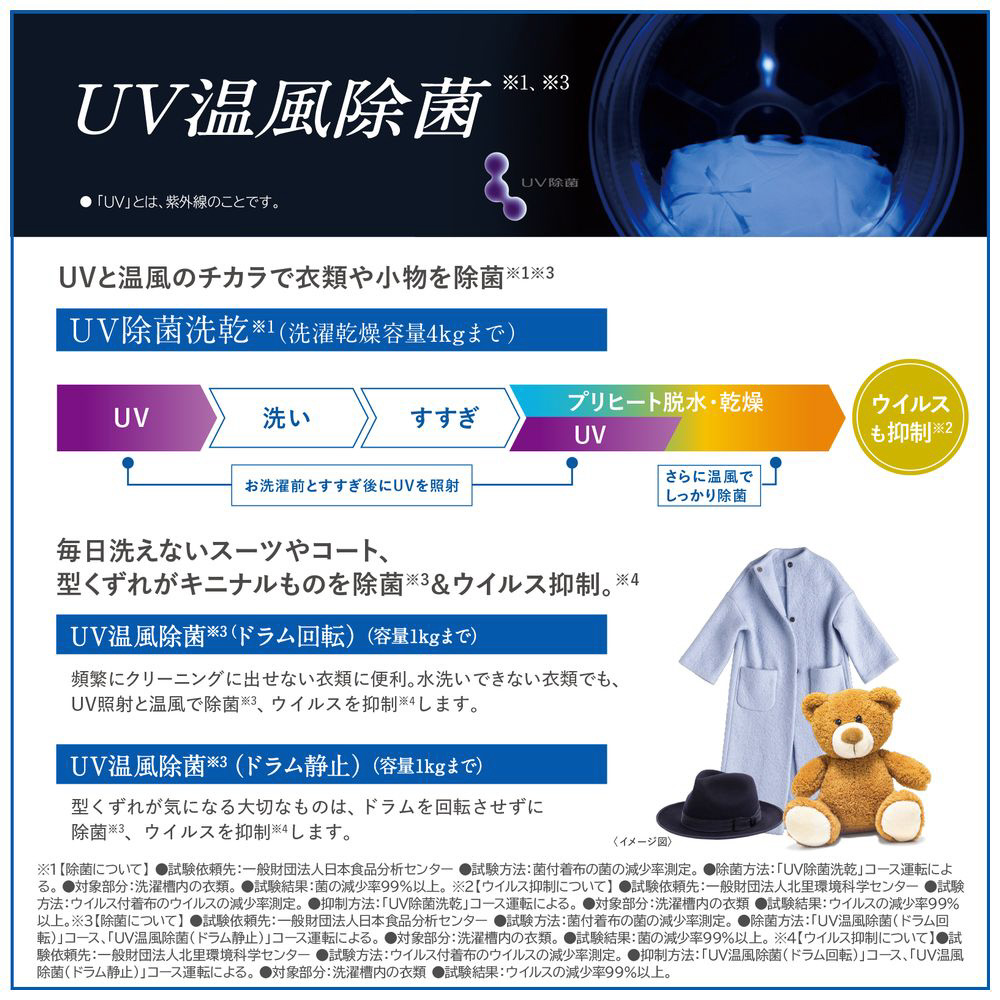 普段の衣類から、洗えない衣類まで自宅で手軽に除菌運転。生活に安心を!衣類の除菌に加え、ウィルス抑制も!