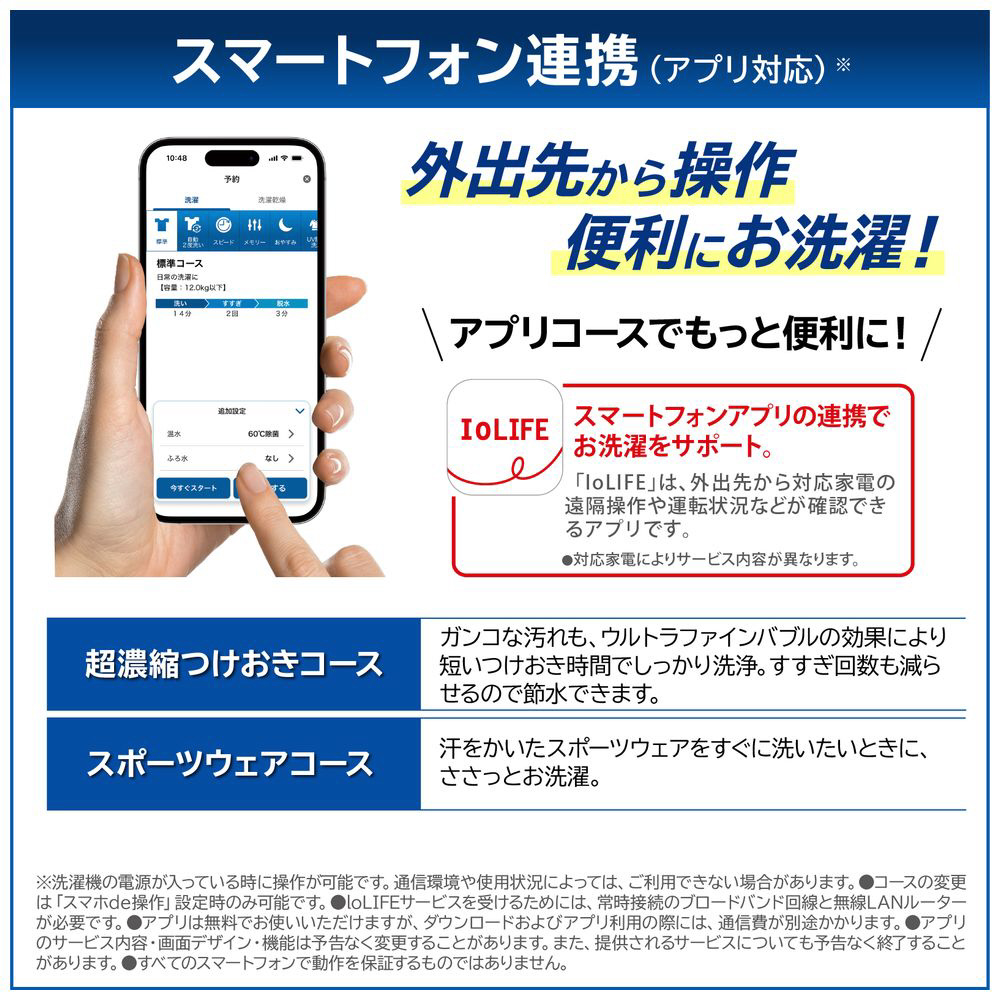 抗菌ウルトラファインバブル洗浄EX、液体洗剤・柔軟剤自動投入、スマートフォン連携を新搭載、清潔機能充実のハイスペックモデル。