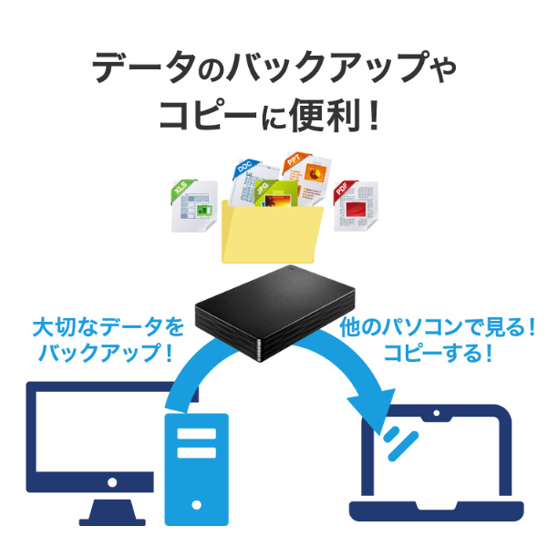 大切なデータをバックアップできるだけではなく、他のパソコンにつなぎ替えて、データを見たりコピーする際にも便利に活躍します。