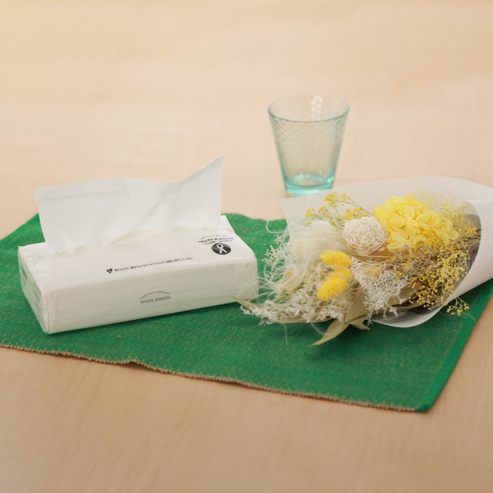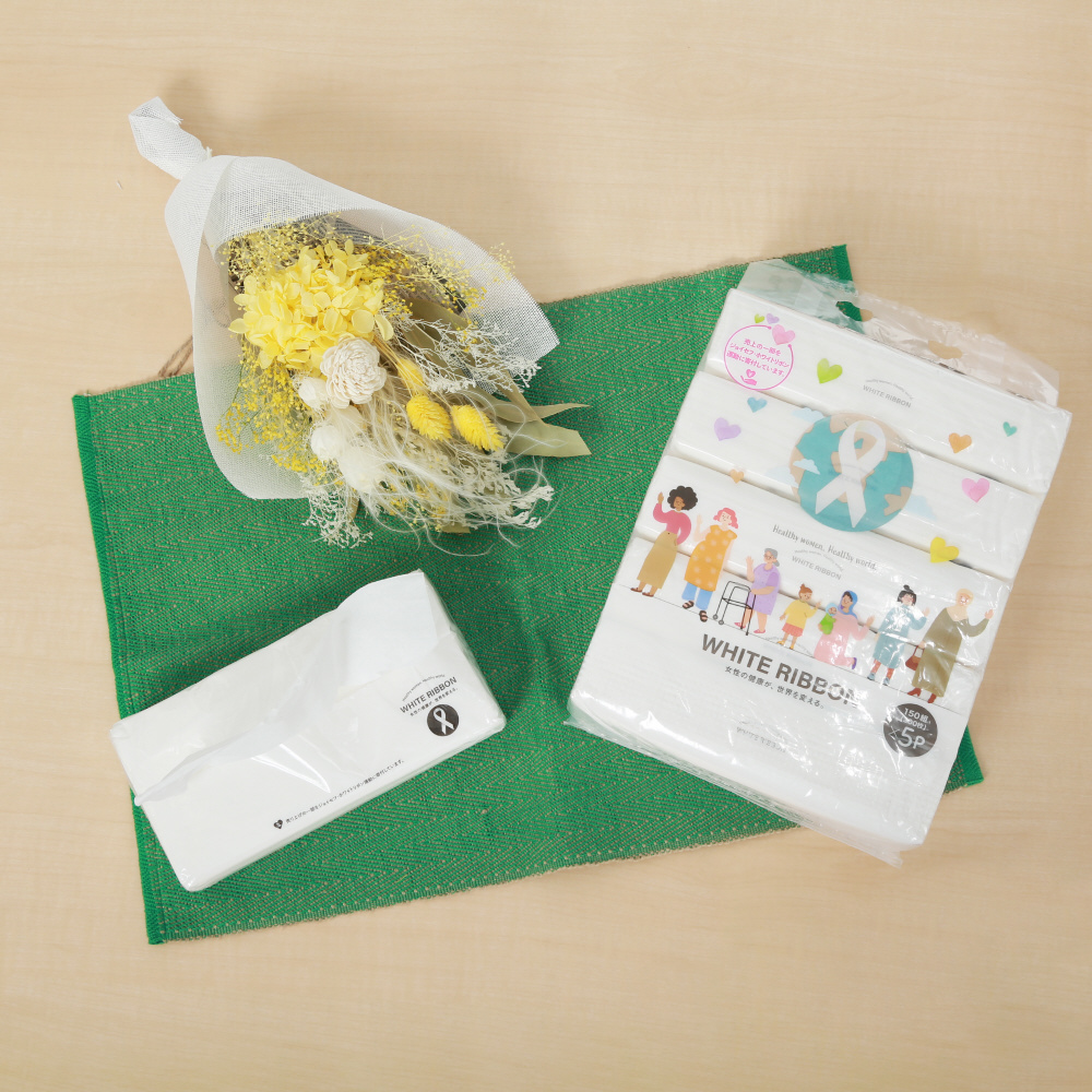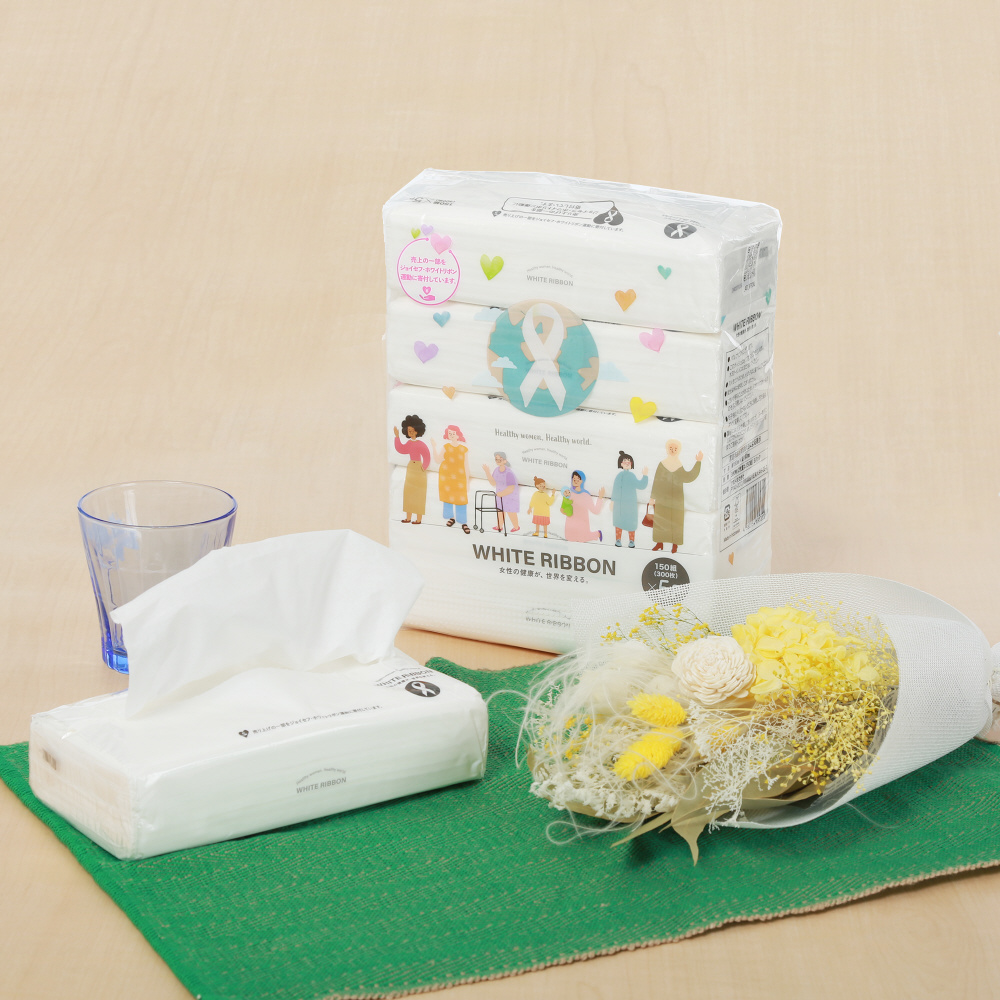「女性の命と健康を守る活動」に取り組んでいるホワイトリボン運動へジョイセフを通じて企画商品の売上の一部から寄附させていただきます。
