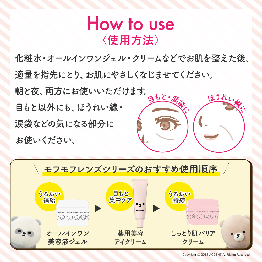 ナイアシンアミド&グリチルリチン酸ジカリウムのW有効成分配合で、美白ケア・シワ改善・肌あれ防止。トラブルを起こしやすい目もとをしっかりケア。