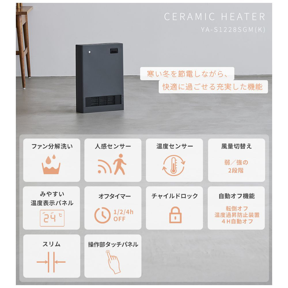 セラミックファンヒーター グレー YA-S1228SGM-H [人感センサー付き] 【864】