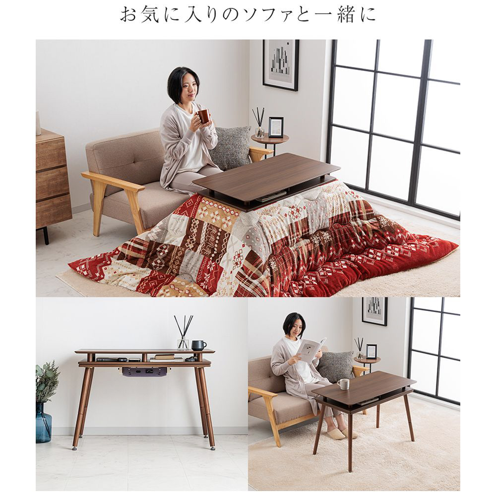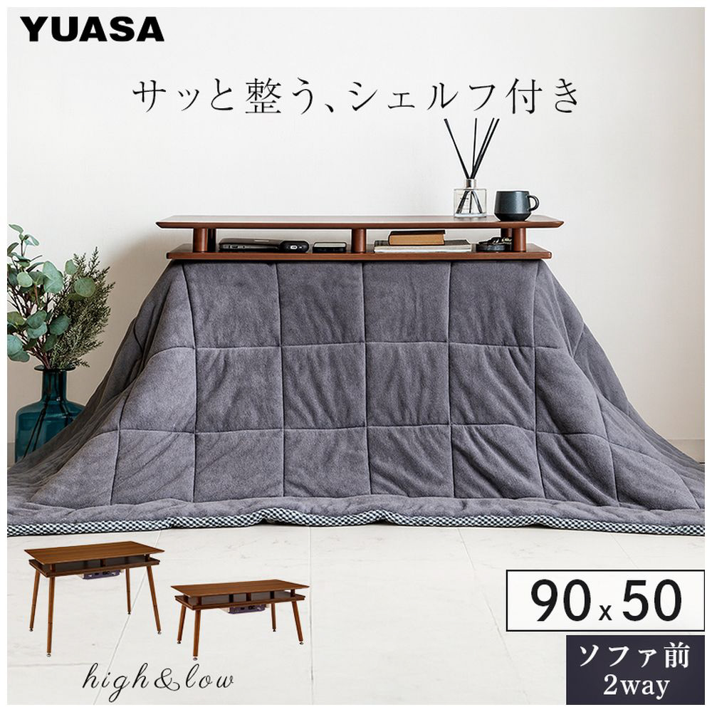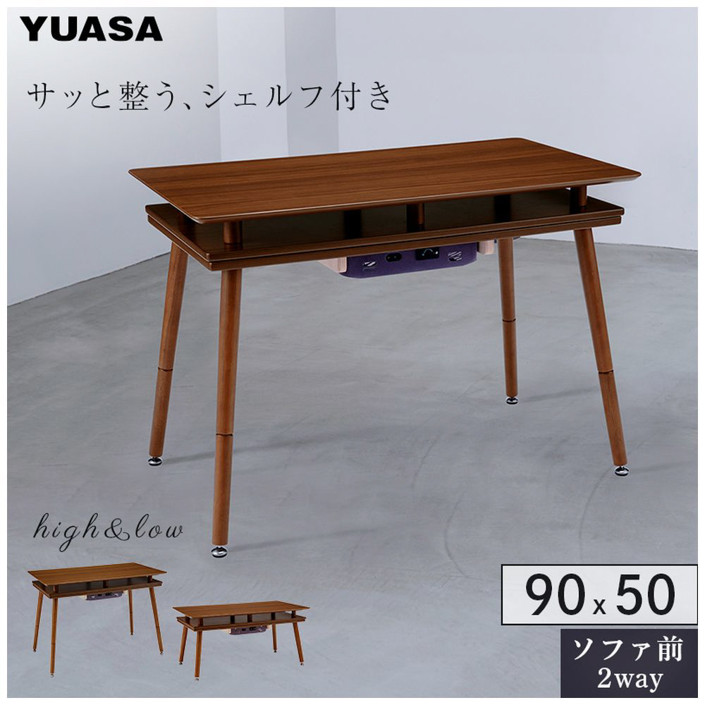 シェルフ付き2WAYこたつ 90×50cm ユアサプライムス ブラウン [長方形]