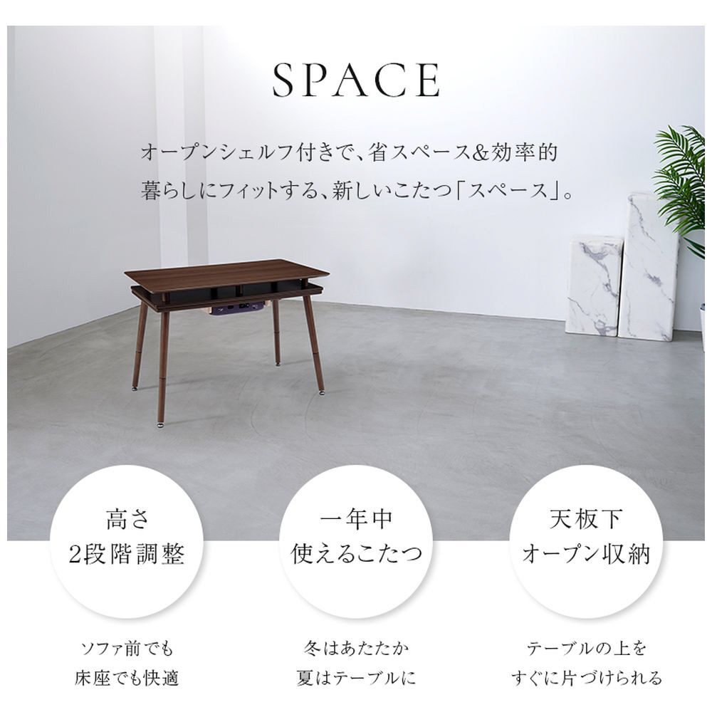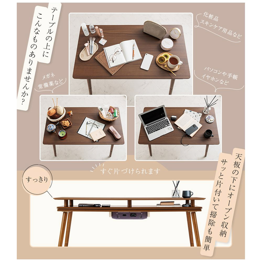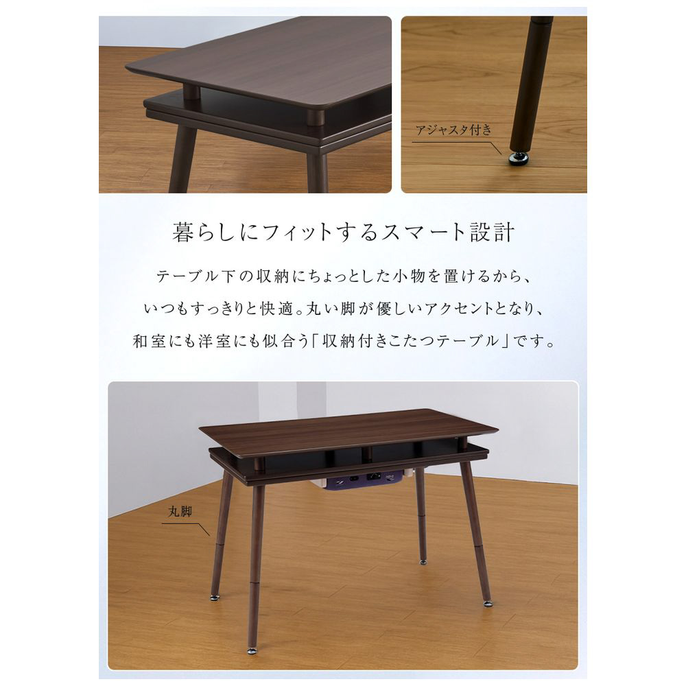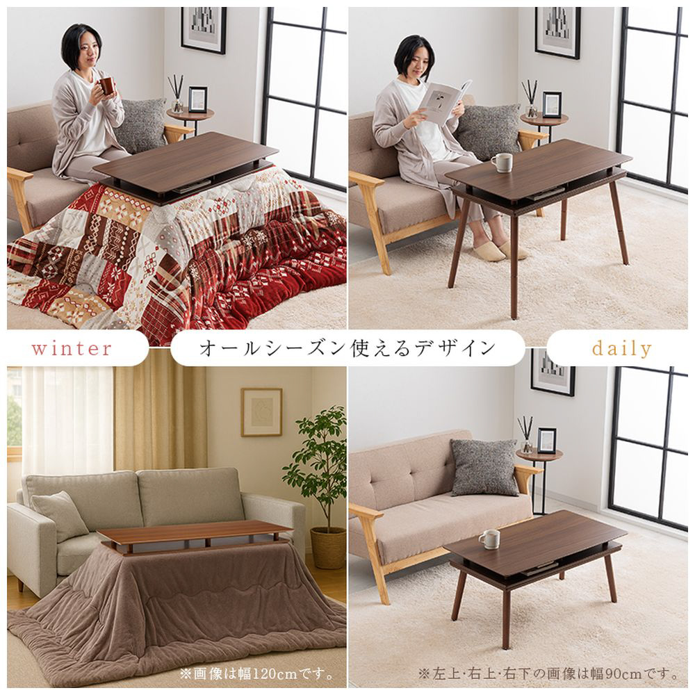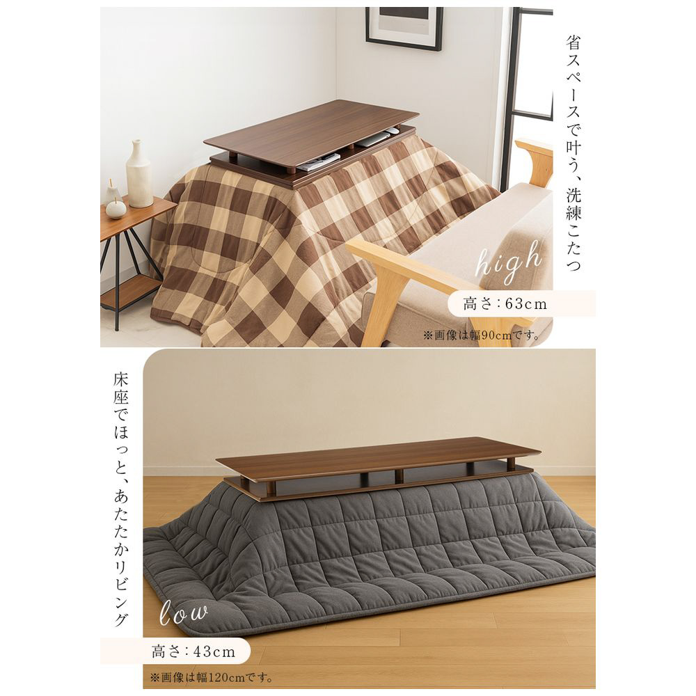 シェルフ付き 2Wayこたつテーブル 長方形 90×50cm オープンシェルフ ハイタイプ ロータイプ