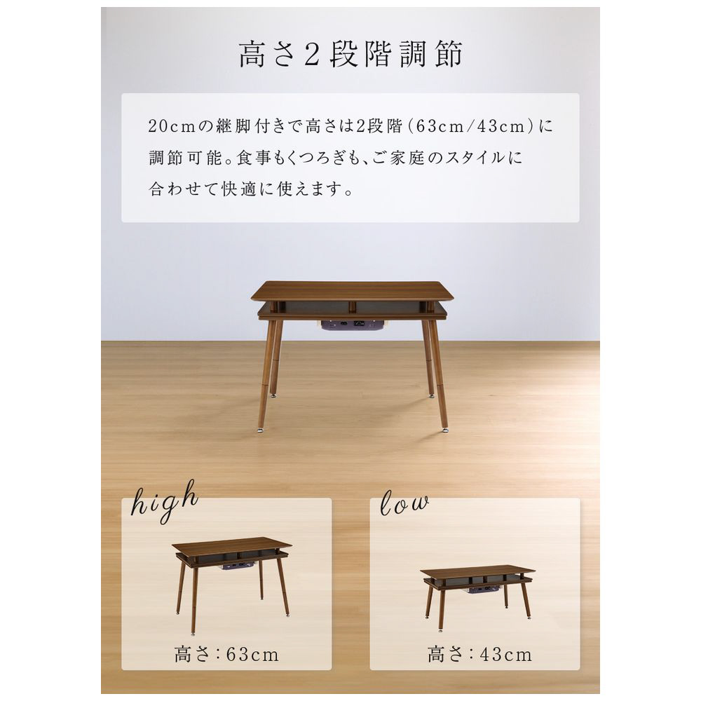 ■継脚付でこたつの高さを43/63cmの2段階に調節可能