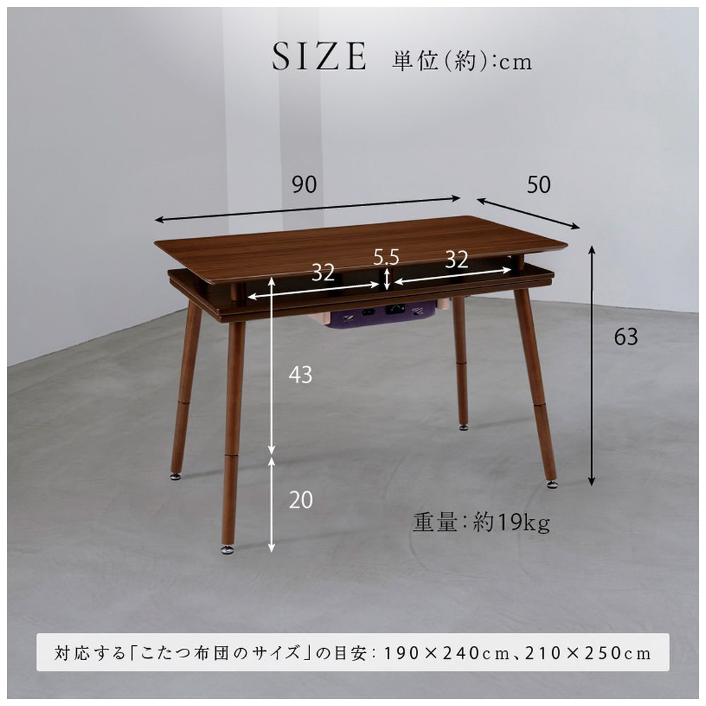 | 商品名 | シェルフ付き2WAYこたつ 90×50cm ユアサプライムス ブラウン [長方形] |