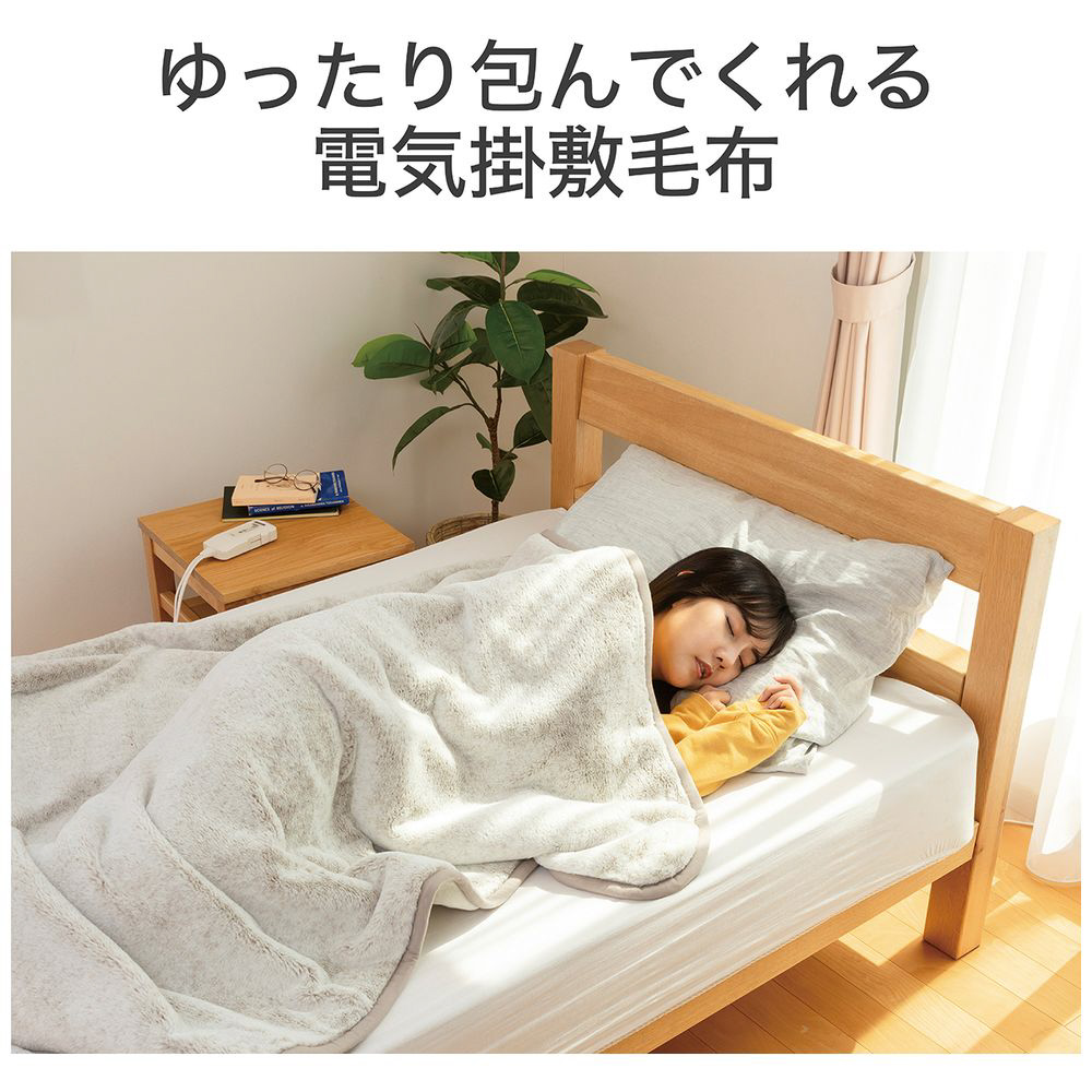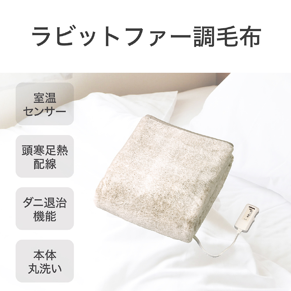 ふんわり感触のラビットファー調の電気掛敷毛布