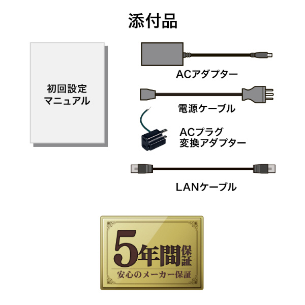 お客様により長く、安心してNASをご利用いただくために、高い保証レベルでの安心を実現した「5年保証」+「データ復旧サービス」を標準添付いたしました。