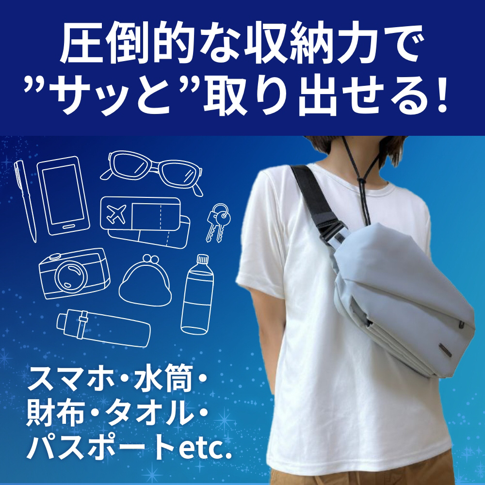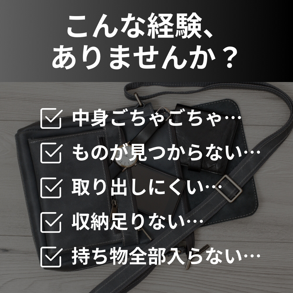 中身がグチャグチャで取り出しにくい、荷物が入りきらない、そんな荷物の悩みを解決し、週末が楽しく快適になる、ちょっとしたお出かけにちょうどいいボディバッグです。
