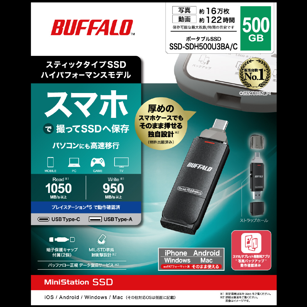 本商品は、バッファローアプリ「写真バックアップ」(無料)に対応。大切な思い出をもっと簡単に保存できます。