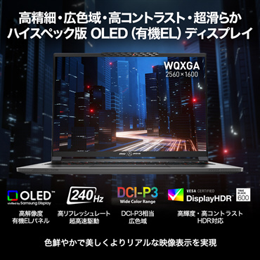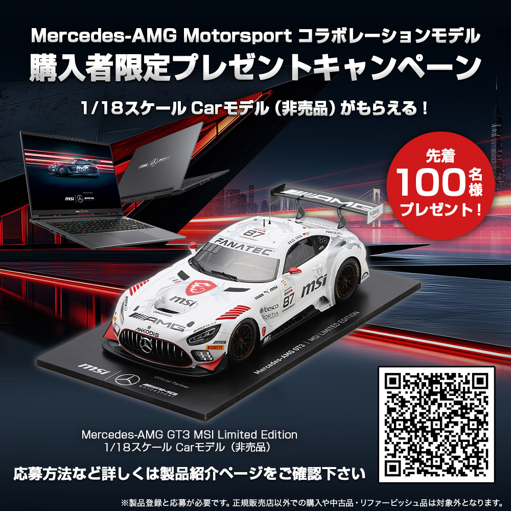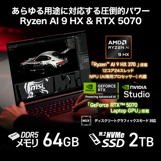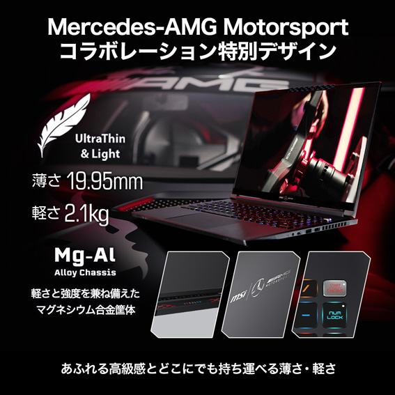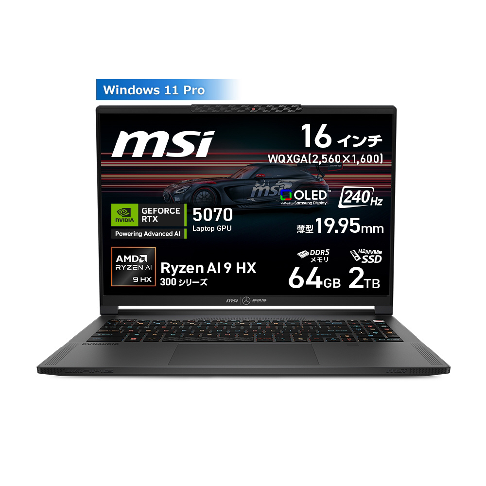 Mercedes-AMG Motorsportコラボレーションモデル クリエイティブゲーミングAIノートPC/AMD Ryzen AI 9 HX 370/NVIDIA GeForce RTX 5070 Laptop GPU/16インチ WQXGA 240Hz OLED(有機EL) DisplayHDR True Black 600 DCI-P3相当/メモリ 64GB/SSD 2TB/Windows 11 Pro/英語キーボード