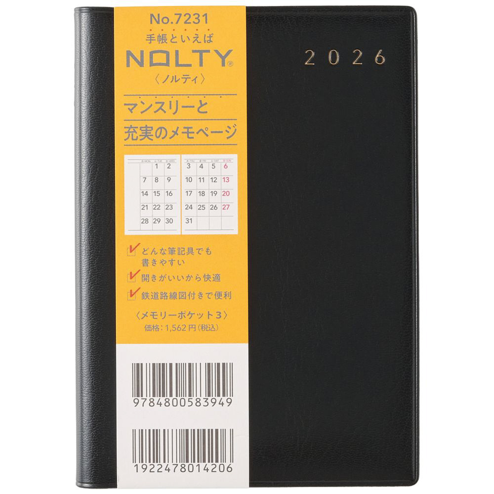 商品名 2026年版1月始まり NOLTY(ノルティ) メモリーポケット3 手帳 黒 7231 [マンスリー /A6 /月曜日始まり]