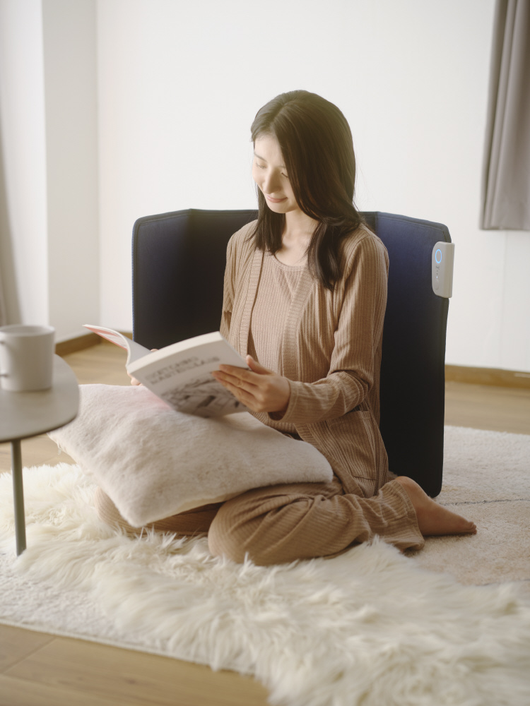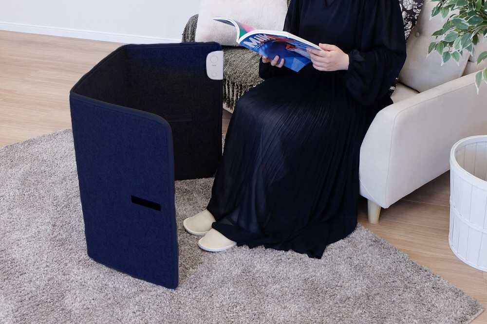 家庭やオフィスで手軽に膝下を温める、ゆったりサイズの3面発熱パネルヒーター