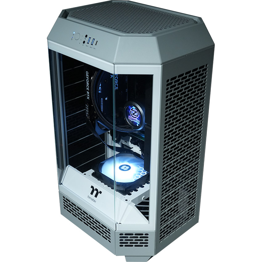 Towerシリーズの縦型デザインを継承した八角柱のボディを採用。別売のスタンドを使用した横置きに対応するほか、3mm厚の強化ガラスパネルを搭載しており、多彩なドレスアップを楽しめます。