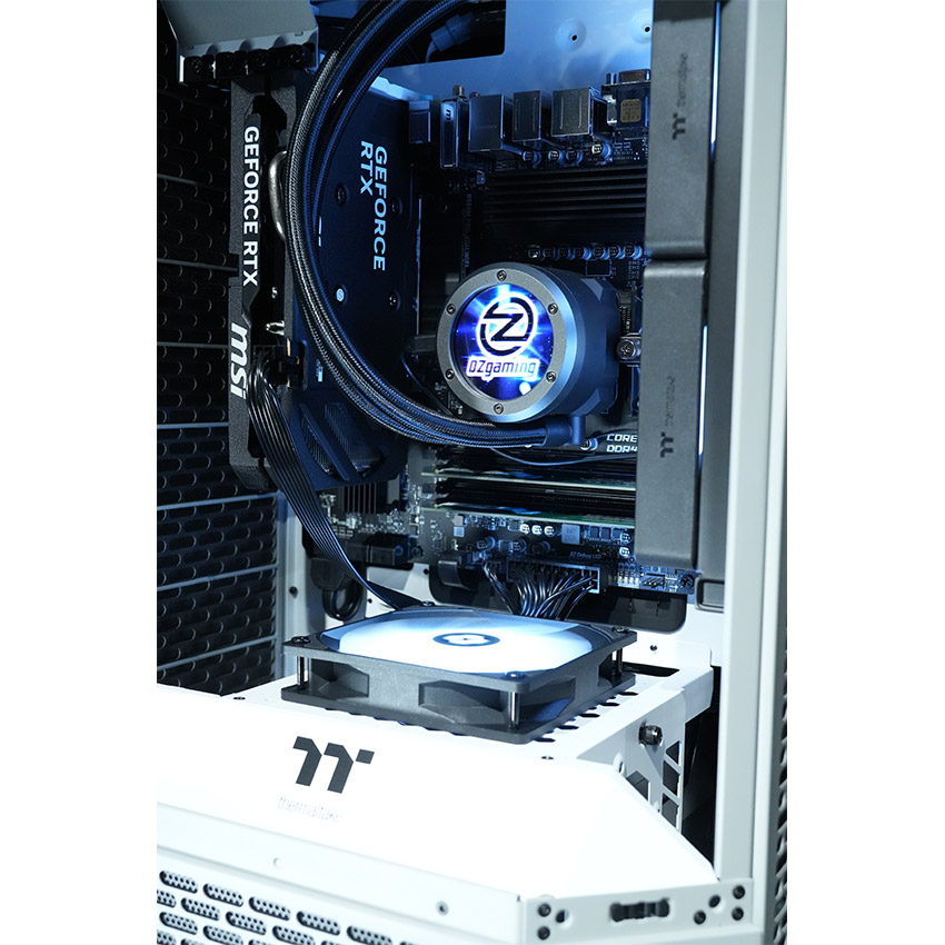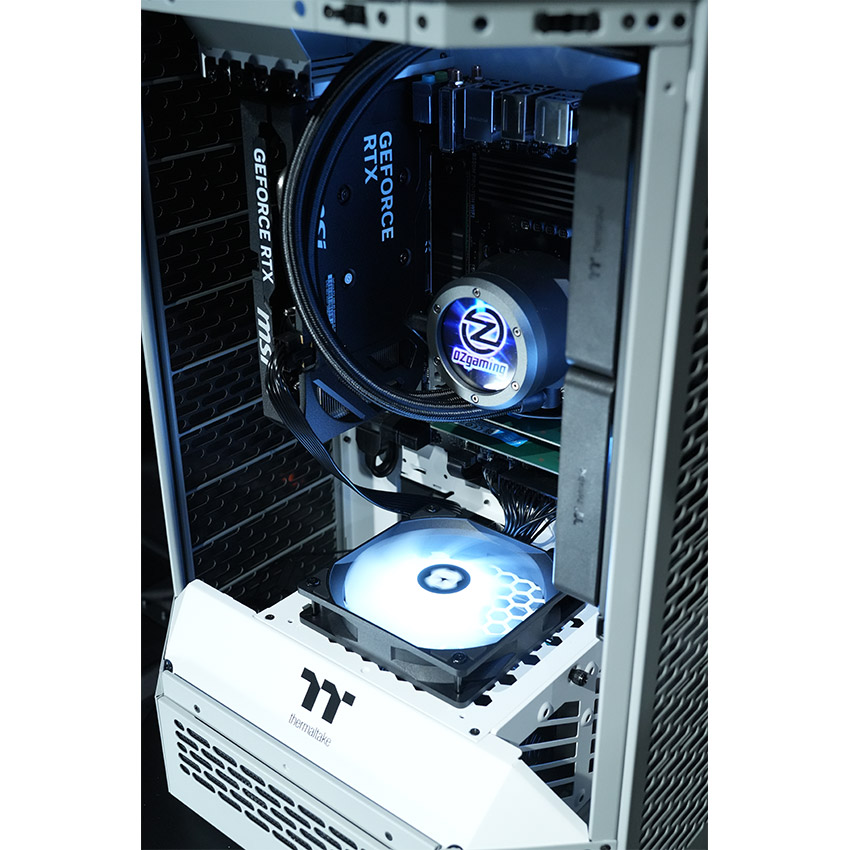 右側面に最大420mmサイズの水冷ラジエーターが取り付け可能となっているほか、最大8基のケースファンの取り付けに対応。前面下部と側面に配置したエアインテークと、上面および背面からの排熱により、効率的なエアフローを構築できます。また、最大400mmの拡張カードが搭載可能となっており、優れた拡張性を実現しています。