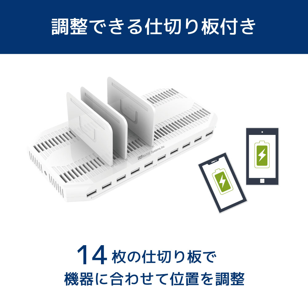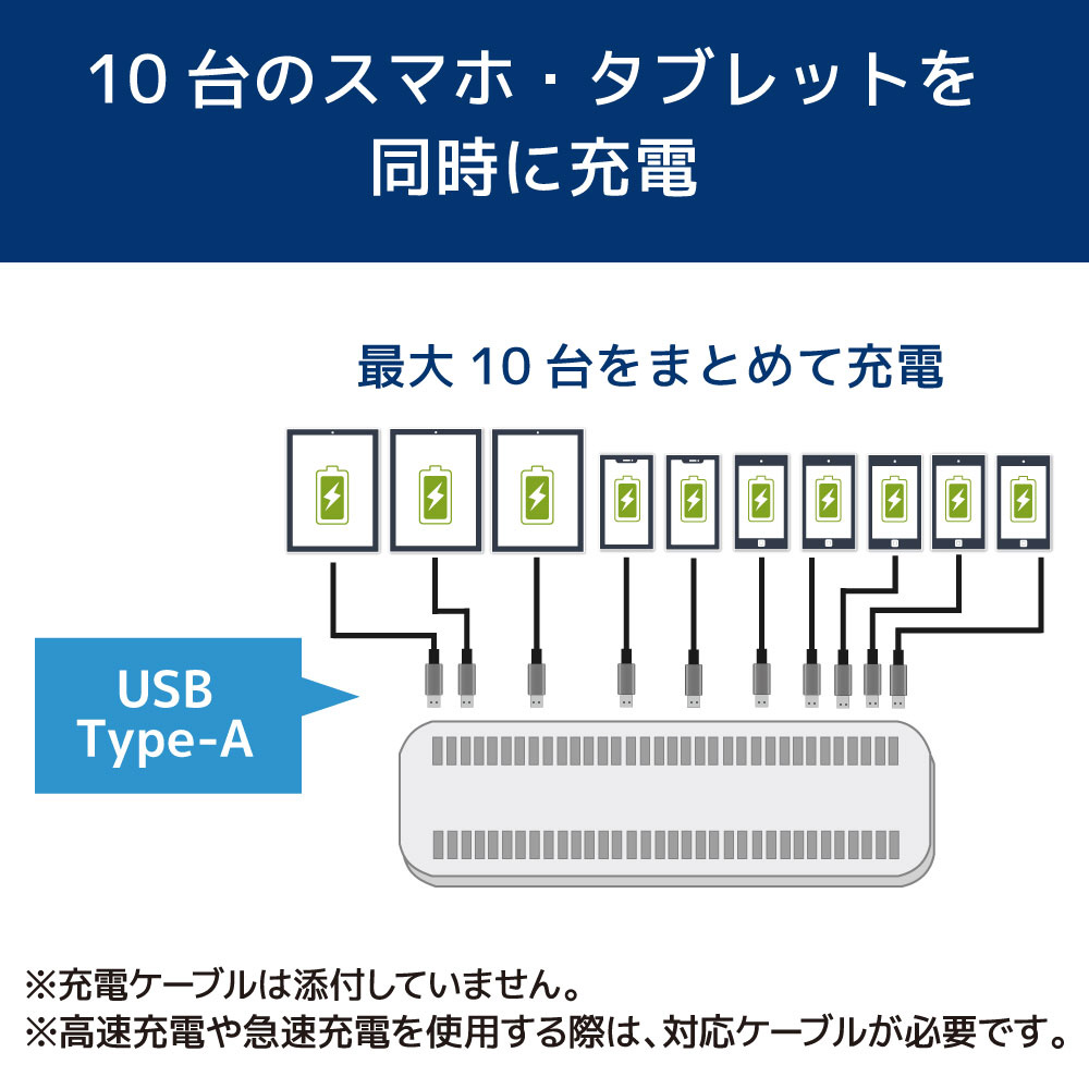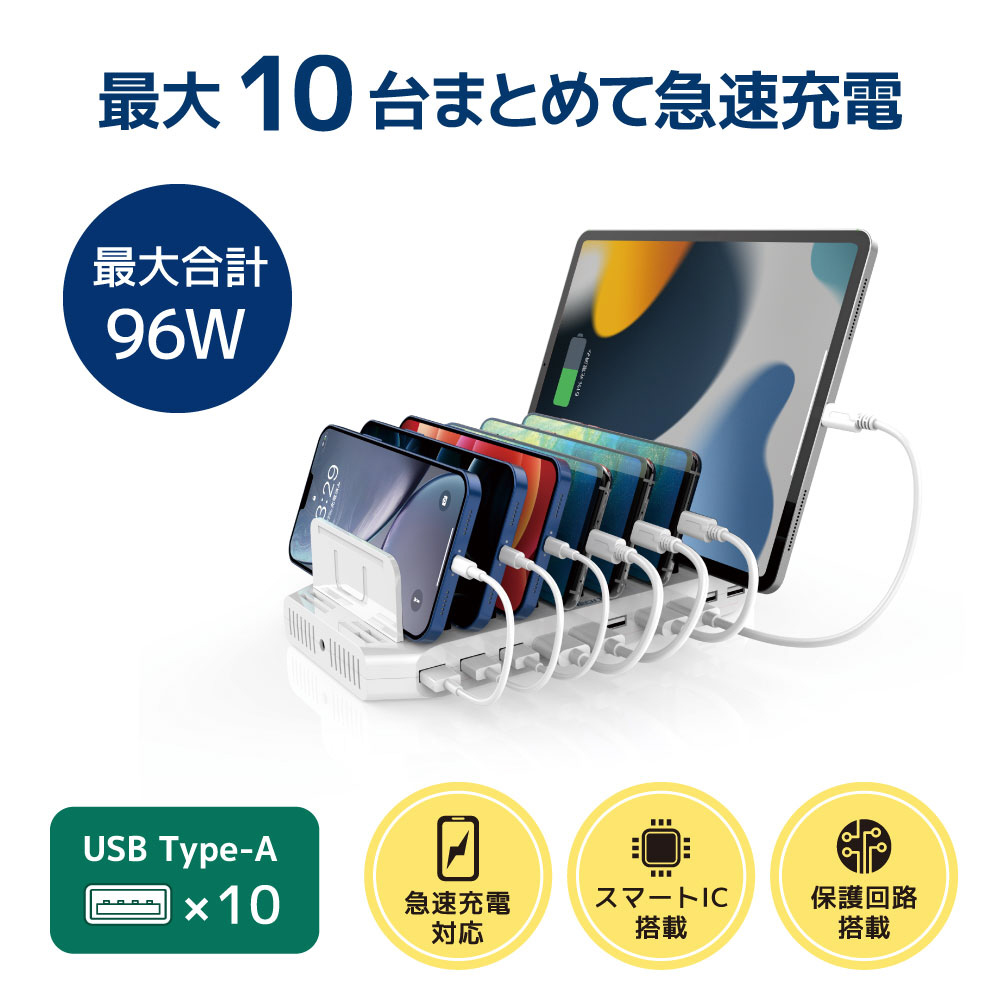AC-USB充電器 タブレット・スマホ対応 96W(12W) [10ポート:USB-A] RS-USBCS10-96 【864】