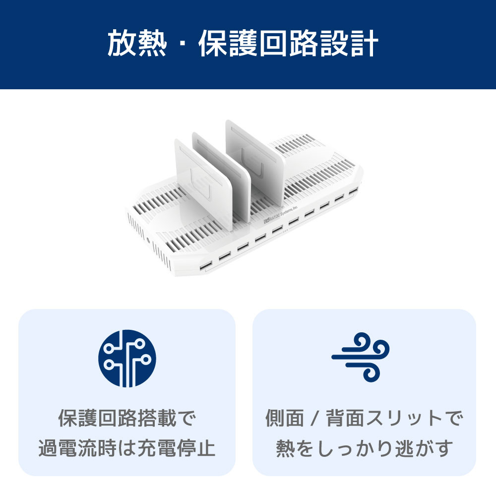 iPad、iPhone、スマホ、タブレットをまとめて最大10台同時に急速充電!