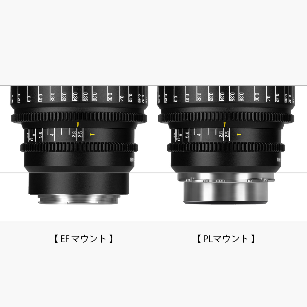 フルサイズセンサーをカバーするイメージサークル径43.5mmを備え、一部のラージフォーマットセンサー搭載カメラでも使用可能です(※1)。PL/EFの交換式マウントを採用し、別売のマウントアダプターを組み合わせることで、E/Z/RF/Lなど多様なカメラマウントに対応します。さらにシリーズ全体で色味や描写傾向、操作感を統一しており、効率的かつスムーズな撮影を実現します。