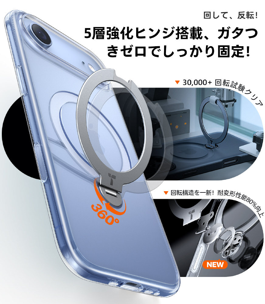 Ostand Q3 Spinは360°回転スタンドを搭載し、縦横自在なスタイルで使用可能。MagSafe対応で、使い勝手とデザイン性を両立した新感覚ケースです。