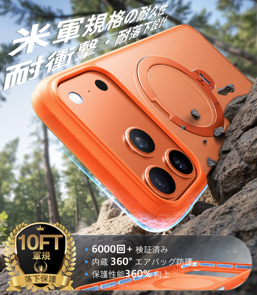 ・2.44m落下防止性能:フレーム部分の強化保護デザインで2倍のMIL耐衝撃性能