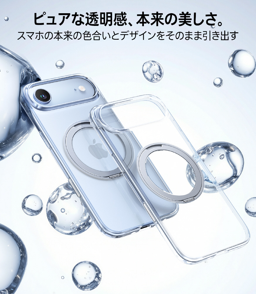 回転式スタンドが背面に搭載されたOstand Proは、縦置き・横置き自由自在。MagSafe対応で充電もスムーズ。使いやすさと美しさを両立した高機能ケースです。
