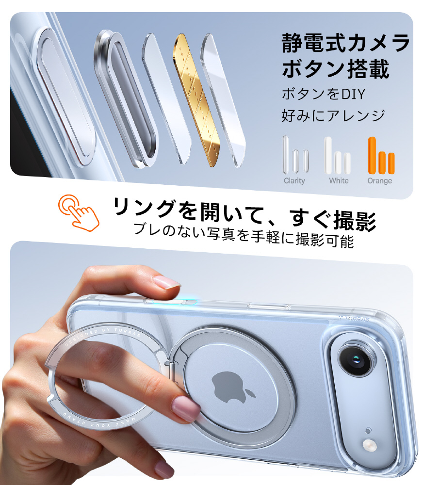 ・TORRAS独自の「Halbach」マグネット技術で、N52マグネットブラケット38個が内蔵され、磁力は18N、MagSafeアクセサリーに対応。