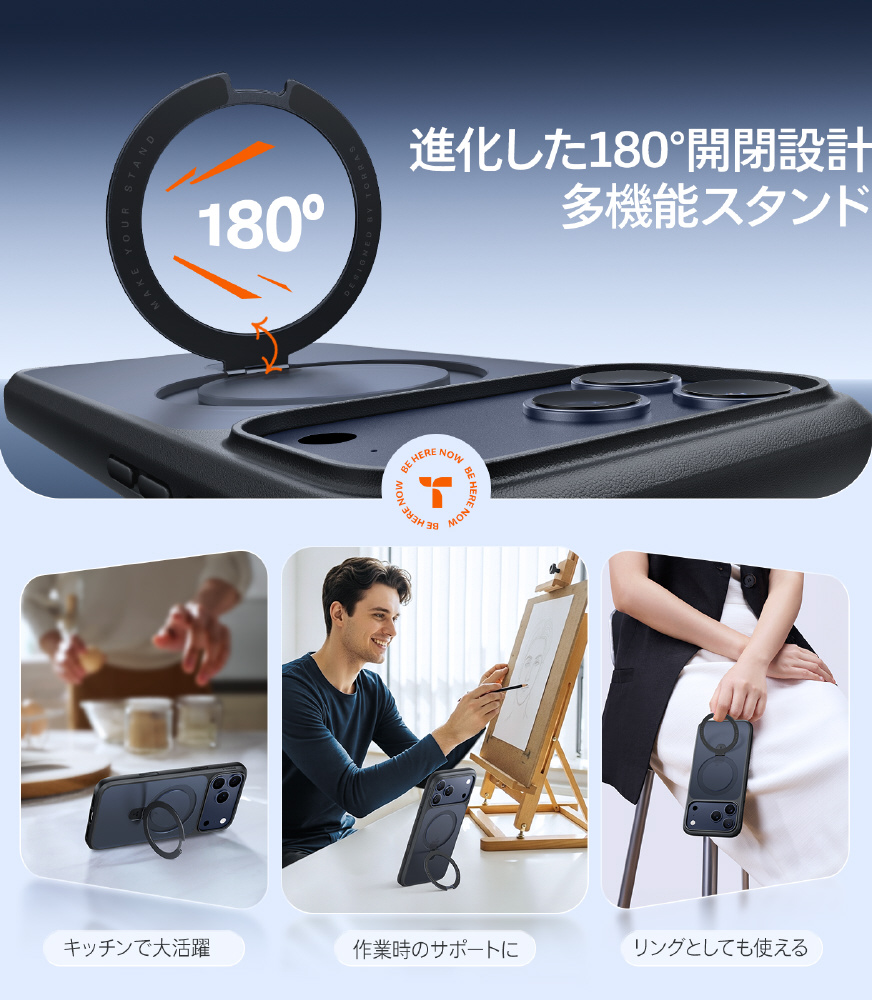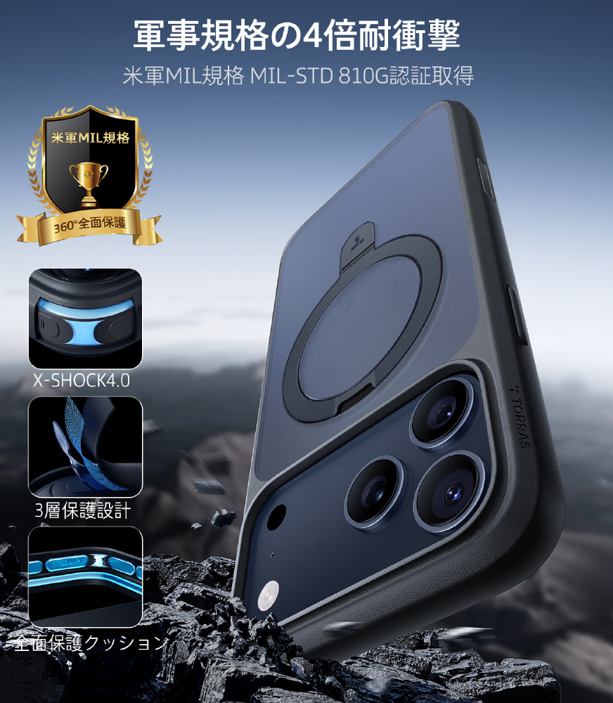 ・TORRAS独自の磁石技術:内蔵された38個のN52磁石によりMagSafeアクセサリーに対応。