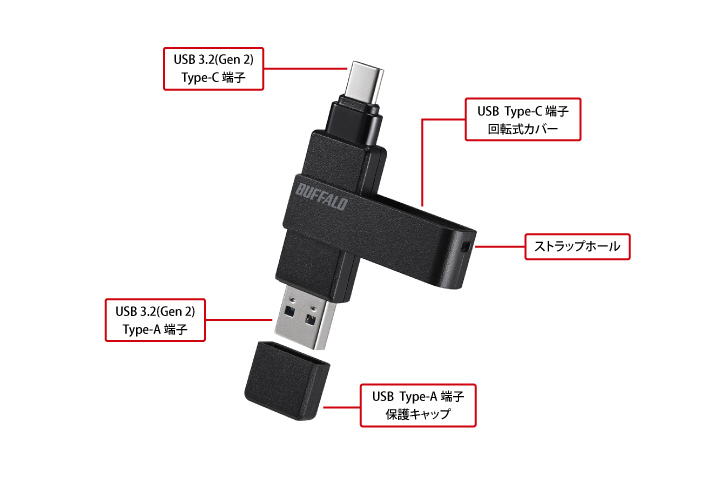 「USB 3.2(Gen1) Type-C/Type-A両対応 回転式USBメモリー」